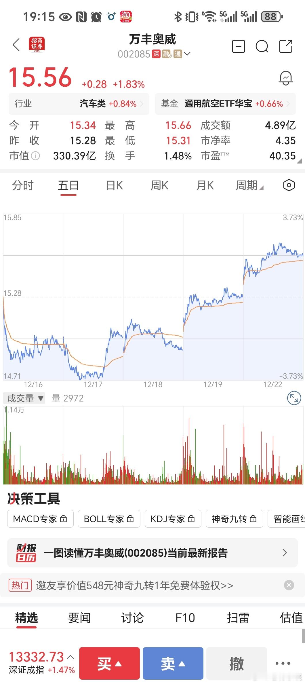万丰奥威中表现在2025年12月22日,万丰奥威随大盘反弹,收涨1.83%至15.56元。盘面关键变化在于资金流向:当日主力资金净流入3064.42万元,结束了此前持续流出的态势,显示有资金在当前位置回补。不过,从更长的周期看,该股本周(12.15-12.19)主力资金仍为净流出2.51亿元,表明整体抛压尚未完全消化,反弹的持续性有待观察。万丰奥威后续走势展望后续,股价短期或围绕当前价位震荡。公司的核心看点是“汽车轻量化+低空经济”的双引擎战略。机构普遍关注其收购Volocopter后构建的eVTOL(电动垂直起降飞行器)业务矩阵,这被视为打开未来成长空间的关键。近期90天内共有4家机构给出评级,目标均价为28.92元,显示对其长期逻辑的认可。后续走势需观察主力资金能否持续流入,以及低空经济板块的政策与情绪催化。以上仅代表个人观点仅供参考,不构成买卖依据;股市有风险,投资需谨慎!股市万丰奥威