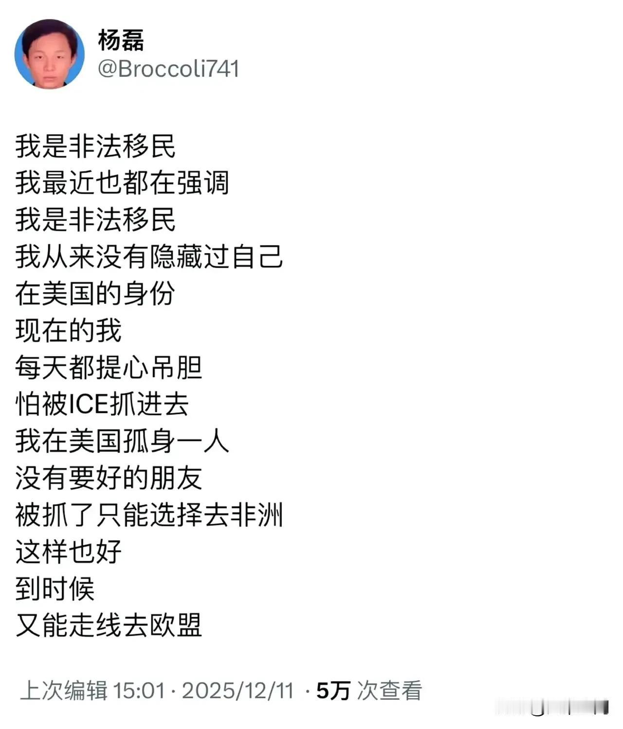 这个润人说自己在深圳投资P2P公司暴雷,损失20万,然后才润到美国,现在在美国依然贫穷,其实大部分说为了自由民主润出去的润人都是这种人,都是在国内负债累累的,有些为了暴富投资什么项目暴雷,有些是借钱炒股或者炒币,然后亏光了,然后负债累累,就像那个甜甜圈就是最典型的,本来当过兵,家境还不错,有房有车,还娶了漂亮老婆,据说父母还给了它几百万,结果自己去炒币,赔光了,房和车都赔了,跟老婆离婚了,然后顶着为了民主自由的借口润美国去了,也不知道能不能度过这个冬天!