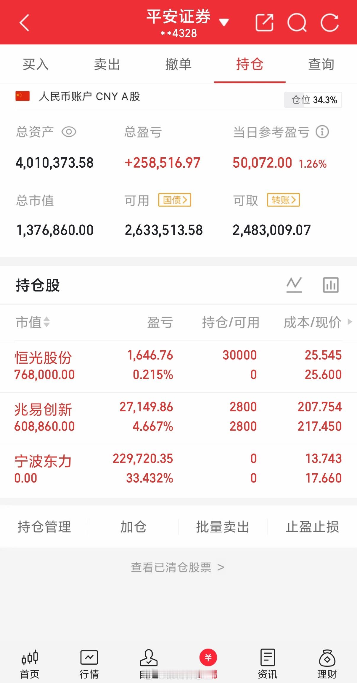 2025-12-22交易记录 恒光 兆易 以后每天更新,感谢各位股友支持,喜欢的朋友可关注我!评论“168”,我们一起“發”,欢迎互动~若手上有把握不好的标的,可私信我交流,我看到会回复你们。 特别声明:本内容为个人实盘记录,不构成任何投资建议,更不鼓励跟买!股市有风险,投资请保持理性。