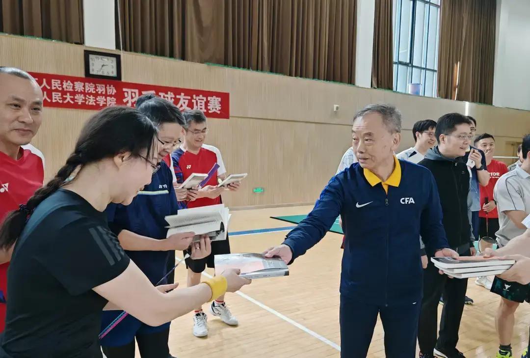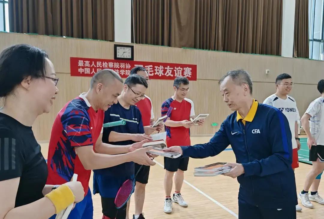 国家检察官学院的羽毛球网,今天拦住的不是案情,是比分。 你很难想象,平时审阅卷宗、出庭公诉的手,扣杀起来一样凌厉。最高检羽协与人大法学院,这已是第三届交锋。球鞋摩擦地板的锐响,暂时盖过了法条与判例的讨论。 何家弘教授赛后赠出新版《亡者归来》。书里新增的涉案企业合规案例,正是当下检察攻坚的重点。球场边的这次赠书,比任何讲座都更生动——理论的生命力,终要在实务的土壤里扎根。 胜负早就不重要。他们计划明年把擂台扩成“法治共同体体育文化节”,加入模拟法庭和学术沙龙。让较量发生在球场,让共识凝聚于赛场。 当法律人脱下西装挥拍,你看到的不是休闲,是另一种构建:较量,不再只为对错;交流,才能孕育新生。