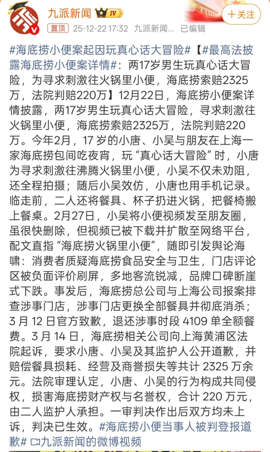 海底捞小便案起因玩真心话大冒险关键还拍视频,还发朋友圈,作死也不是这么作的,海底