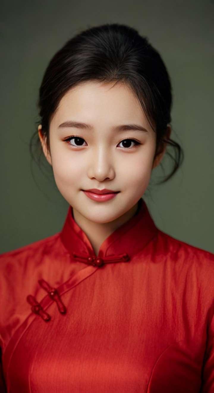 AI扩图 AI红裙浅笑