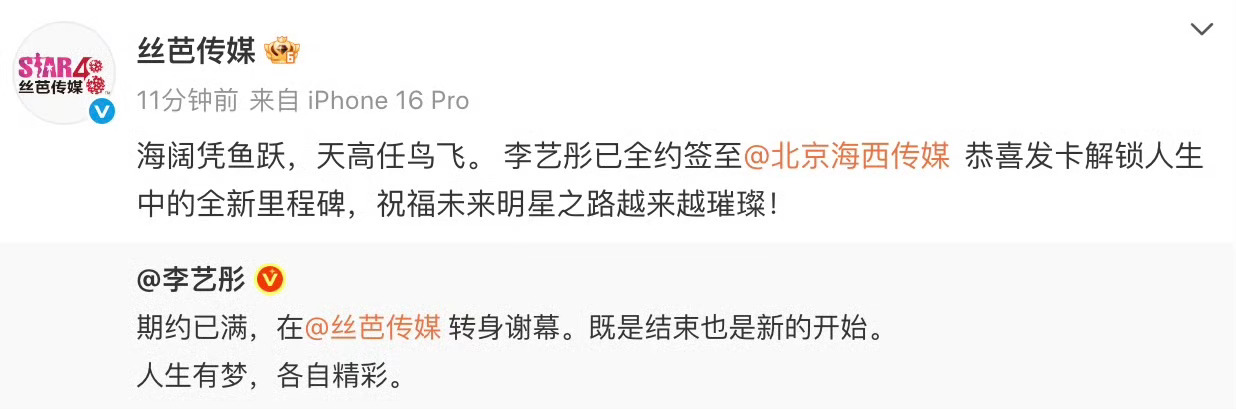 李艺彤官宣离开丝芭,好聚好散了,不知道鞠婧祎的结果会怎么样!