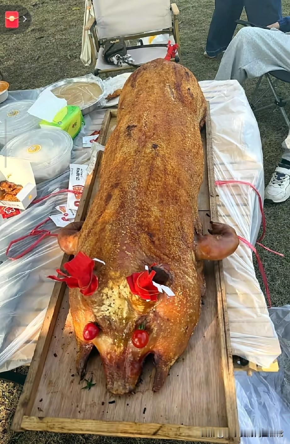 广东露营的排面,直接把烤全猪搬去草地也太狠了! 广东朋友的露营局,直接给我看懵了😱 别人露营还在啃三明治、煮泡面,广东人倒好,整只烤全猪直接端上草坪,金黄金黄的脆皮油光锃亮,旁边还摆着披萨、车厘子、各种盒装小吃,这阵仗哪里是露营,分明是把酒楼宴席搬去了野外! 都说广东人会吃又懂享受,这回算是见识到了。烤猪烤羊在他们的露营清单里居然是“常规操作”,这手笔也太豪横了吧!难怪网友都说广东露营卷出了新高度,这哪里是亲近自然,简直是把舌尖上的盛宴搬到了草地上。 不过我就好奇了,这么大一只烤猪,几个人能吃完啊?而且露营带这么大份硬菜,真的不会太麻烦吗?大家觉得这种露营吃法是真享受还是纯属摆拍?