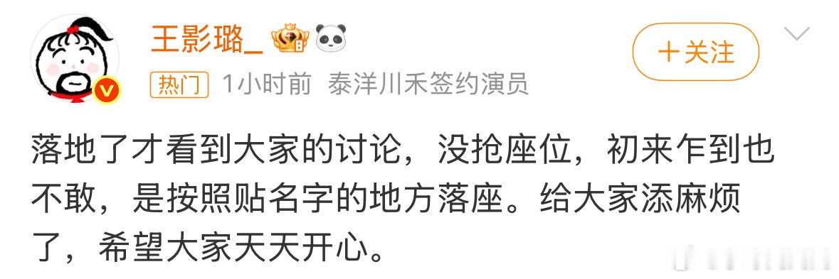 王影璐没抢座位王影璐还特地出来回应了网友讨论的疑似“丞磊被抢座”事件……