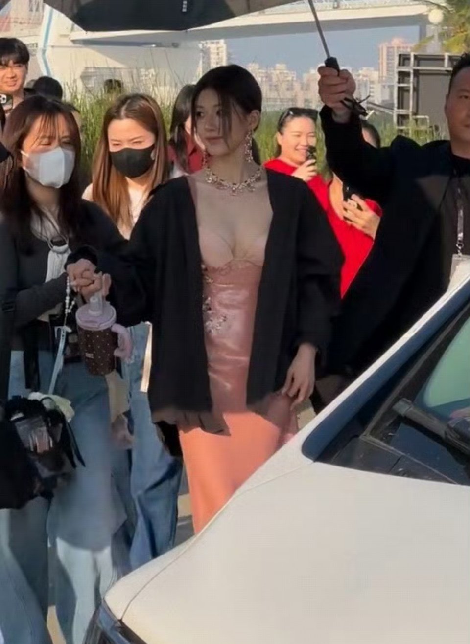 刘亦菲这一身衣服太丑了,用花挡住了才觉得好一点,全靠脸撑着