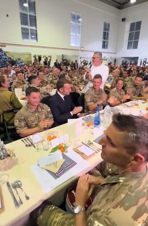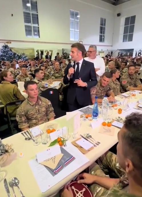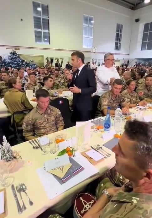 法国军队的仪式感很强! 小马哥和法国军人一起用餐,饭前先宣布法国将新建一艘航空