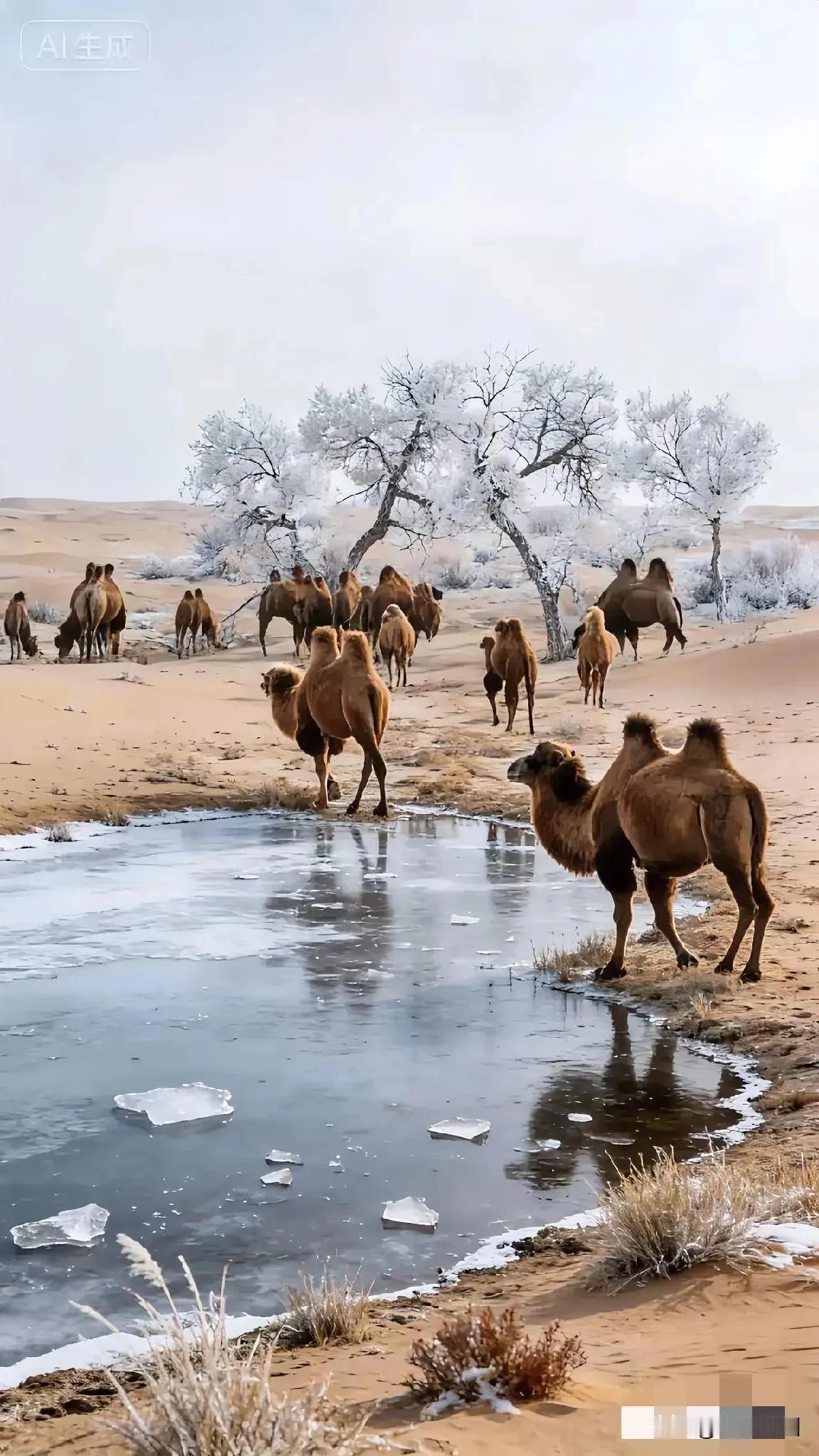 冬日清晨,静谧的湖畔小屋,暖阳洒满霜雪,早安好时光。🌨️🏡🌞