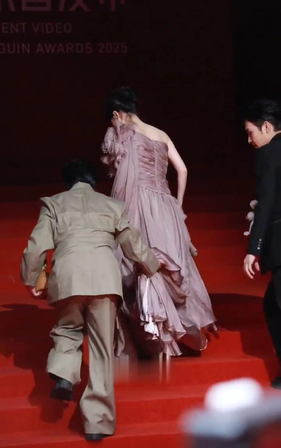 最怕张彬彬这样的,人笨还勤快,导演帮着毛晓彤提长裙,弯腰躬身,高度拿捏的的正合适,张彬彬一看,赶紧也帮忙,他从导演手里接过裙摆,就那么高高的举着,毛晓彤直接慌了,赶紧把裙子往下扯,哥,你把裙子举那么高,是想让我走光吗?导演一看,冲上来上手揍张彬彬这大直男,像极了老丈人制裁傻女婿,最后还得是导演帮着毛晓彤提裙子走完红毯,看导演提裙子提的那么专业,张彬彬也知道自己为什么被敲打了,只能捂着嘴在两人身后尴笑!毛晓彤 张彬彬