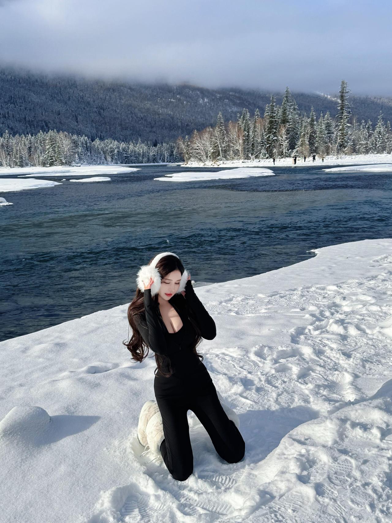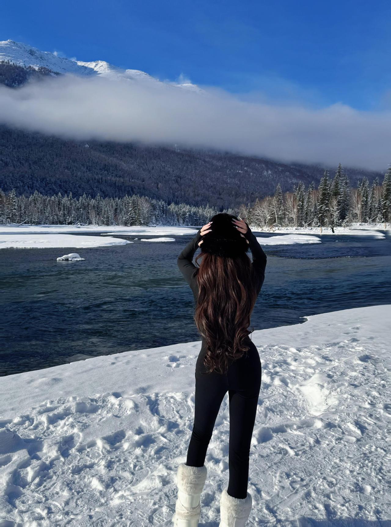 喀纳斯的冬天,雪是蓬松的棉絮,覆在河岸的冻土上,踩下去便是一串软乎乎的脚印。 墨色的河水不曾封冻,卷着碎冰哗啦啦淌向远山,水汽混着寒意扑在脸上,倒生出几分清冽的甜。我拢了拢耳罩的白绒,指尖触到的雪粒凉丝丝的,却又被阳光晒得发暖。 身后的山林裹着银霜,云絮低低擦过雪峰,风掠过松枝时,抖落满空碎雪。站在雪与水的交界,只觉得天地都静了,唯有河水的声响,和自己心跳撞在一起,喀纳斯的冬,是揉进骨里的温柔。