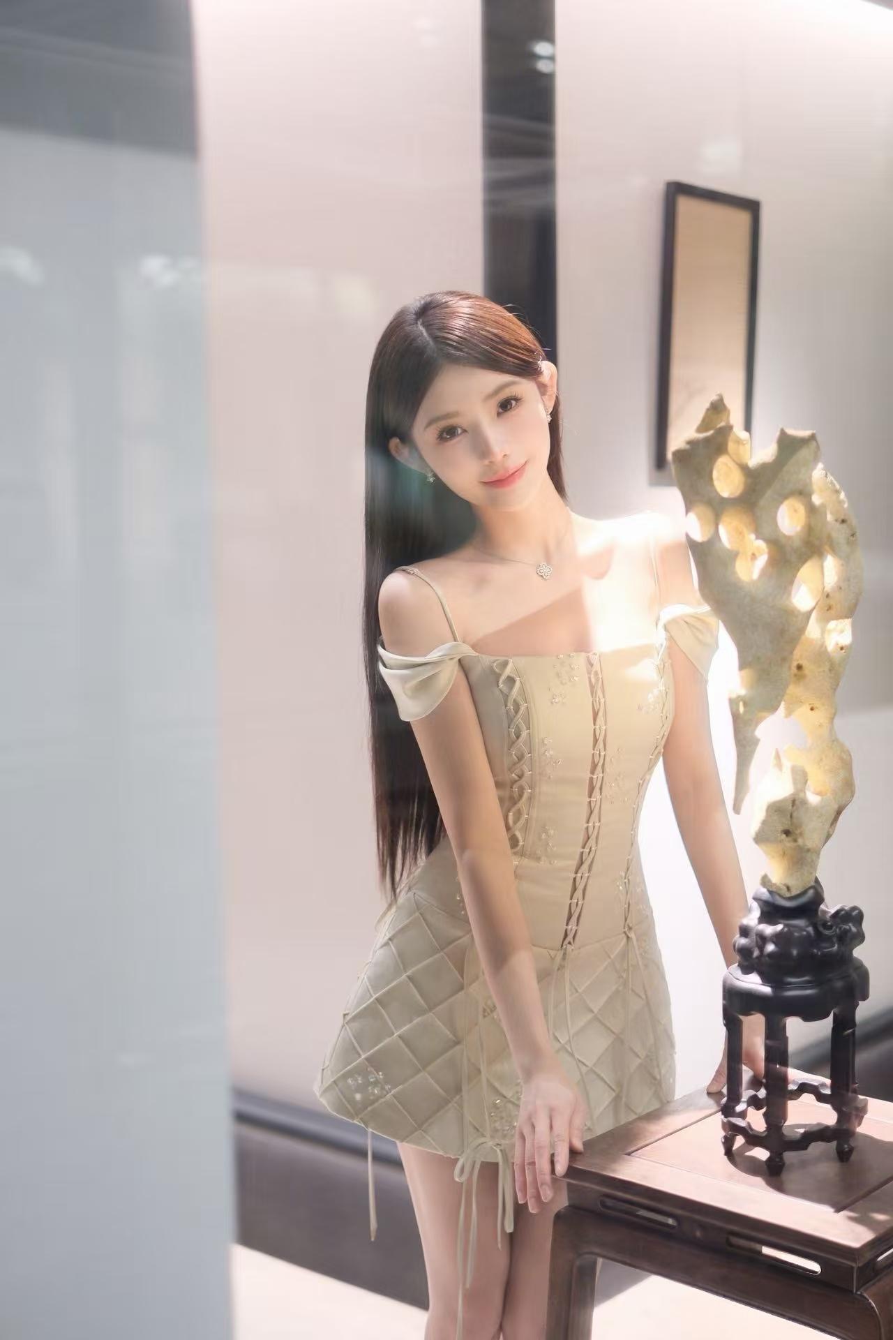 《林麓晴光》晴林叠翠覆苍苔,石畔佳人倚树来。柔发垂腰凝浅黛,素衣裁玉衬香