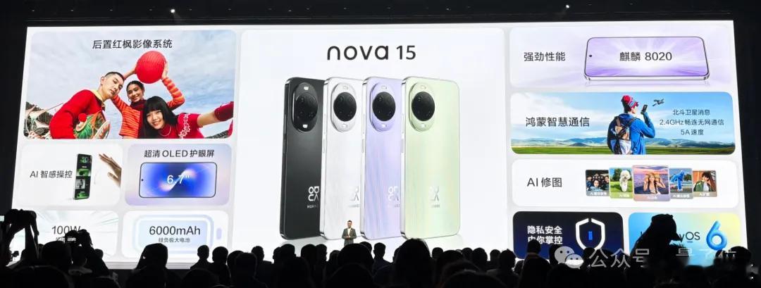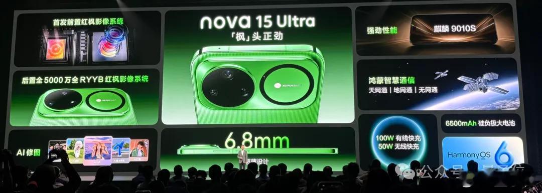 华为发布会华为nova15及全场景新品发布易烊千玺nova华为全球代言人 易烊千玺现身深圳,手里拿的绿手机,几乎第一时间抢走了现场的全部注意力。这就是华为nova系列最新推出的nova 15 Ultra带感绿(真的很吸睛的颜色)。nova 15系列这次的产品分层依旧非常清晰,共推出数字标准版、Pro版和Ultra版三款机型,全系搭载HarmonyOS 6。该系列的Ultra和Pro版本在外观上采用横向立体堆叠设计,搭载双星镜头模组,就像有两只大眼睛。同时Pro版和Ultra版首次升级麒麟9系芯片,性能定位向Mate、Pura系列看齐。Ultra版本4199元起,Pro版本3499元起。数字标准版则维持了更经典的单环加闪光灯设计,外形延续上一代风格,价格2699元起。nova 15系列首发了一个炒鸡实用的功能:AI沾色功能。去某地打卡拍照,如果天气不好出不了片,怎么办?可以在网上找张想要的天气图片,然后用这个功能把网图的色彩、风格“沾”到自己的照片里来。Be like图6——网页链接