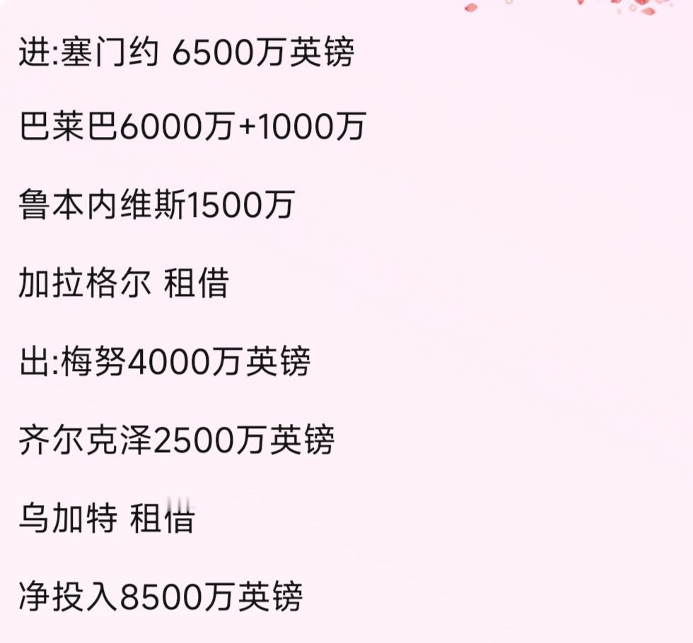 曼联球迷冬季转会的美梦,再投入一个多亿! 主要买赛门约,据说曼联给出丰厚合同。 还有夏天没买的巴莱巴,这次得手? 梅努这些天表现真差,卖掉! 齐尔克泽也不行,必须卖。 感觉曼联还是有钱,不是说快钱了吗? 假设明年夏天换教练,估计又得投入好几个亿,曼联这么有钱,AC米兰羡慕疯了。[可怜]