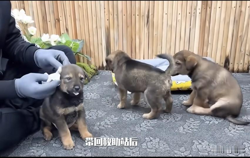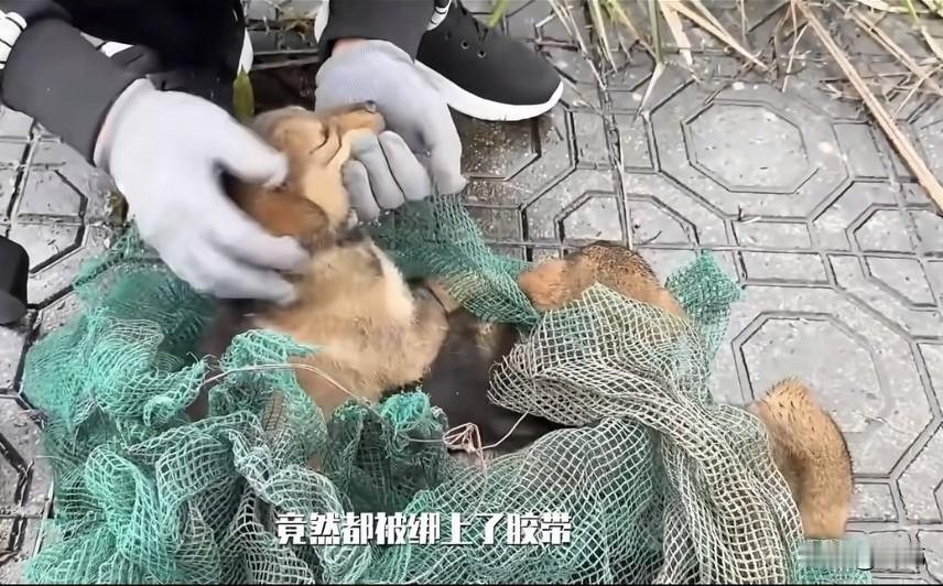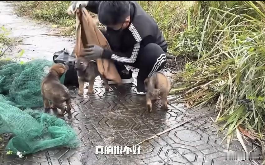 太可怜了!这天一位小哥哥和朋友一起开车去玩,当他们开到一个小村庄的时候,听到路边有小奶狗哭泣的声音,于是他们就停车查看,结果看到令人愤怒的一幕,几只小奶狗被人装在绿色网袋里挂在一个小水塔上。 小哥哥他们赶紧过去把它们抱下来,解开袋子,这才发现它们的脚上也被绑了胶带,这显然是遗弃者担心它们跟着或者找回去才这样做的,实在是太坏了。如果没人救助它们,这么冷的天气,它们肯定凶多吉少。 善良的小哥哥他们顿时心生怜悯之心,于是决定收养它们,他们把狗狗们送去了宠物医院检查并打了疫苗,之后就带回去收养了,相信在他们的照顾下,狗狗们也会越来越好的。
