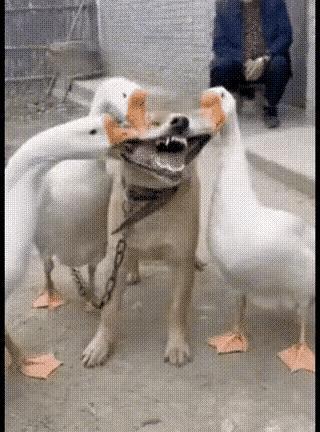 没想到大鹅这么厉害,小狗不是对手。