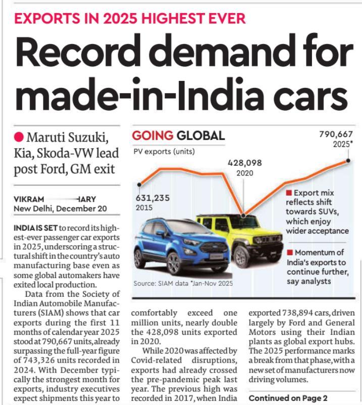 之前发的那条汽车年产量的微博,评论区大家最震惊的是:“印度汽车产量比韩国还高了?” 结果今天我又看见一个数据:不光产量高,而且人家车,还卖出去了。 2025 年 1–11 月,印度已经出口了79万辆乘用车,提前超过 2024 全年的出口量。按现在这个节奏,年底破百万基本稳了。 更有意思的是卖的是什么。 不是我们刻板印象里的低价小车,而是 SUV 占比越来越高,全球市场都吃这一套,单车价值也更好看。 厂商这边,福特、通用撤了没错,但马鲁蒂铃木、起亚、斯柯达-大众反而越投越大,新产能一上再上。 看来印度现在已经是“正儿八经的全球造车基地”,不是临时工。