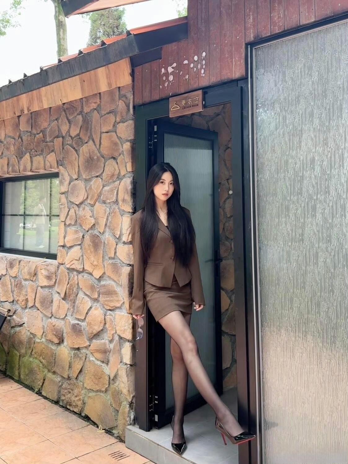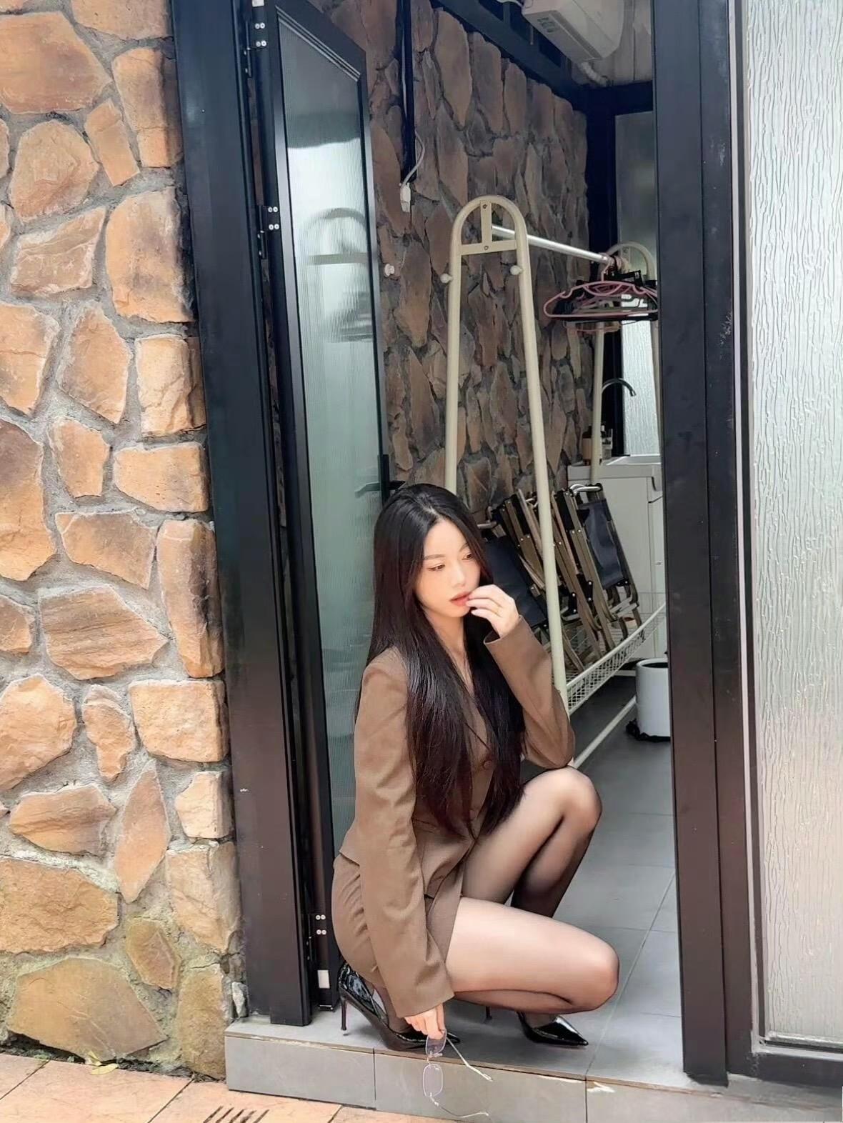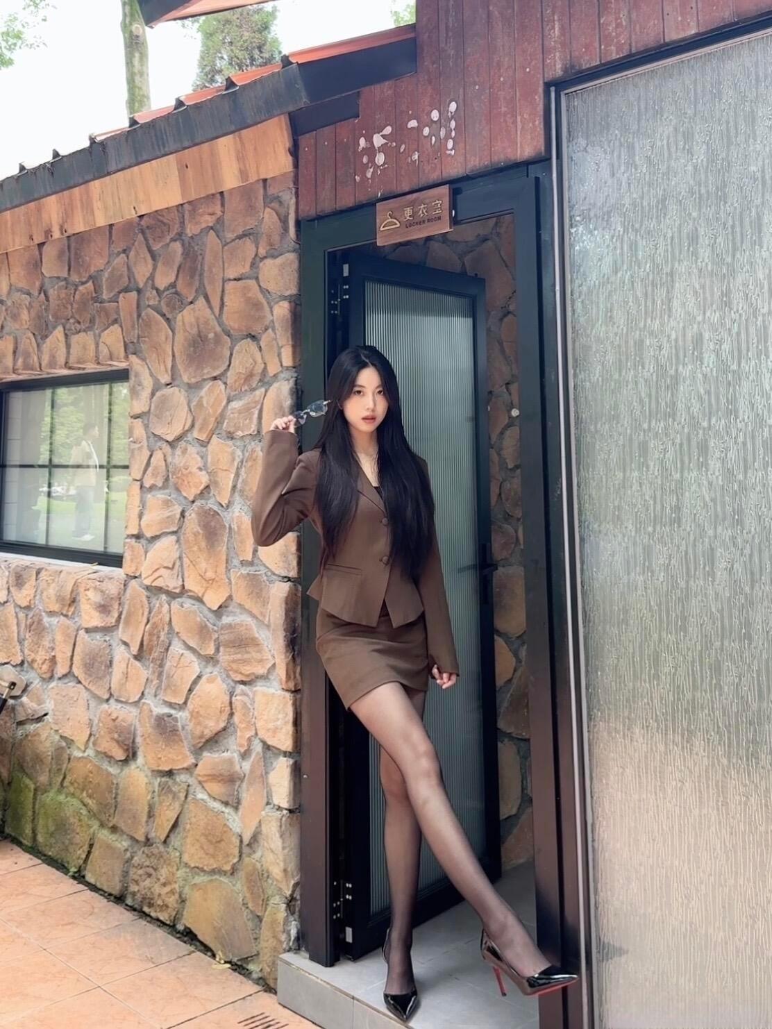 这套穿搭是干练轻熟的棕系职场甜酷风,棕褐色短款西装+同色系包臀裙的套装自带职场干练感,短款版型显高又利落;内搭隐约露出的线条增添了轻熟性感,适配轻职场或轻奢休闲场合。 搭配尖头高跟鞋精致利落,与西装的气场呼应,提升了整体精致度;眼镜配饰注入一丝清冷感,让甜酷风格更有层次。能充分展现穿着者干练轻熟的甜酷魅力。棕色西服穿搭 咖棕色半裙套装 通勤穿搭