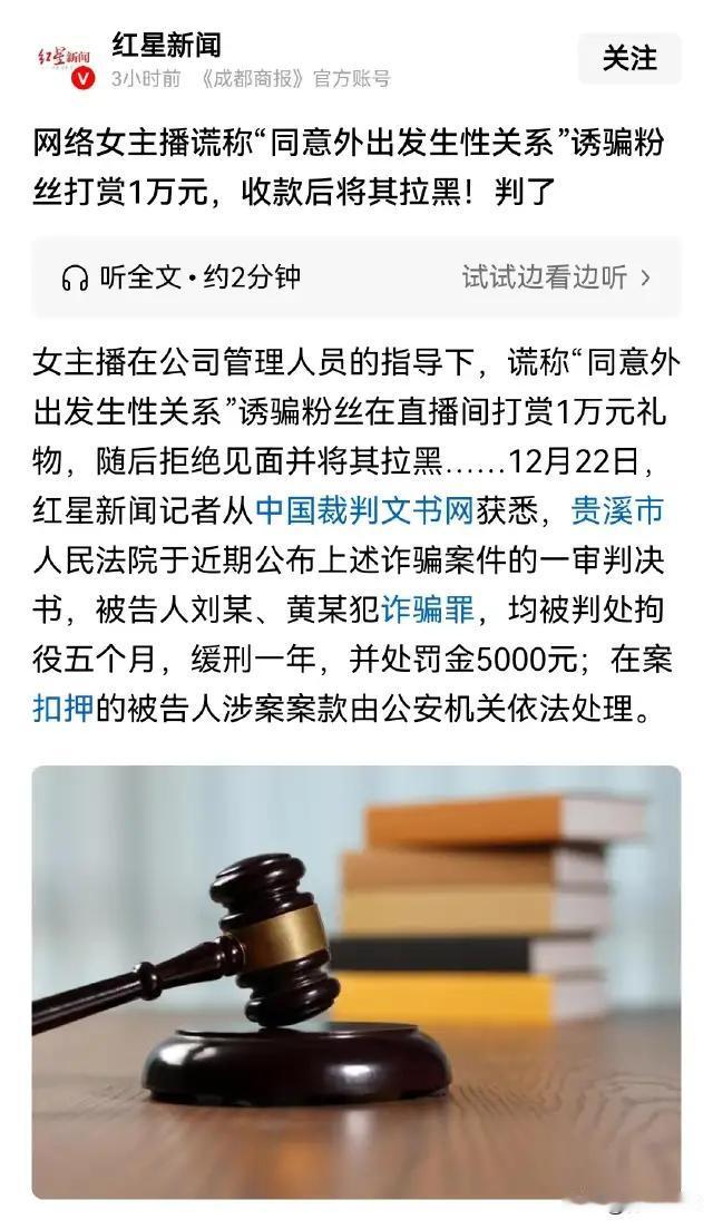 江西贵溪,一场看似寻常的网络“艳遇”,却演变成令人哭笑不得的现实讽刺。汤某作为榜一大哥,雄心勃勃地以为自己终于邂逅了浪漫故事,谁知背后却藏着一场精心设计的“套路”——礼物刷了整整一万块,结果人家黄某一刷完礼物就潇洒地把他拉黑!这波操作,不仅让汤某“破防”,更让人忍不住深思:现代网络社交里的信任到底还能靠谁? 更令人意想不到的是,汤某愤怒报警,想讨回个公道,结果却成了“悲剧”的开始。从“被套路”,到“积极维权”,这种反转背后,是网络虚拟与现实法律的碰撞,也是个人保护意识的急需觉醒。现实告诉我们:在网络世界光鲜亮丽的背后,隐藏的是层层迷雾和真假难辨的人性考验。 这起事件提醒每个人,花钱买信任和感情,往往是风险极高的赌博。那些靠刷礼物换“爱情”的幻象,不仅让人心碎,更可能沦为被利用和伤害的对象。法律虽然保护着受害者,但防范意识才是第一道安全屏障。 面对复杂的网络环境,汤某的遭遇或许是个警钟:别因一时孤独和冲动,掉入所谓“情感陷阱”。人生真正的精彩,不该建立在虚拟数据和数字礼物上,而是建立在真实信任和真诚交流中。 艳遇故事 贵溪男士