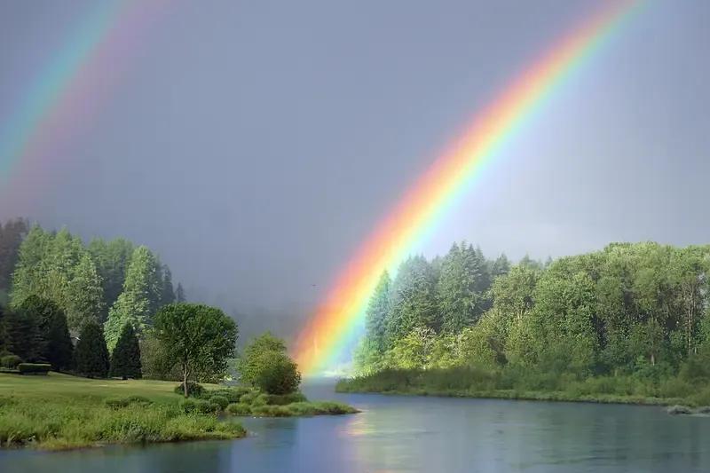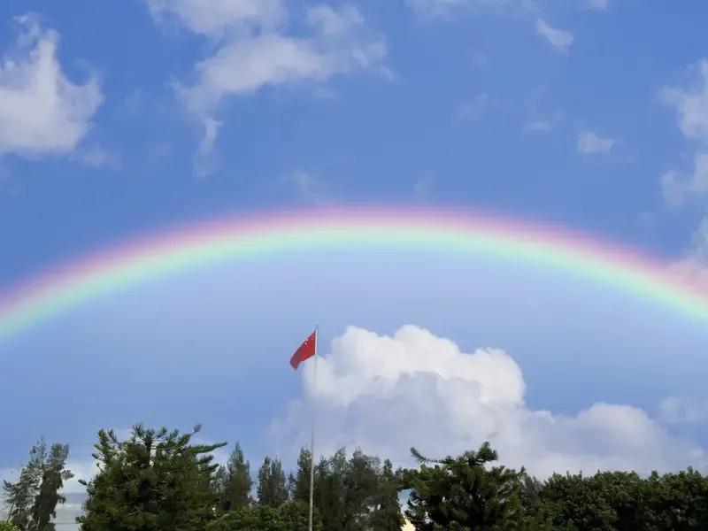 上:雪做文章交白卷, 下:虹描美画展彩图。