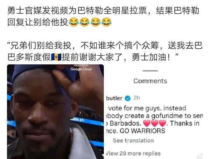 现在的全明星也是 大部分时间都搁那飚3分 确实没以前的味道了 巴特勒婉拒,兄弟们,别为我投票了 他常规赛都一直摸鱼的,这是心里有数啊,第一是搞钱,第二是生活,工作上的事差不多得了 ,一堆人在那儿假惺惺的你投一个我投一个的难看比赛,确实还不如喝着咖啡打着牌的悠闲假期。