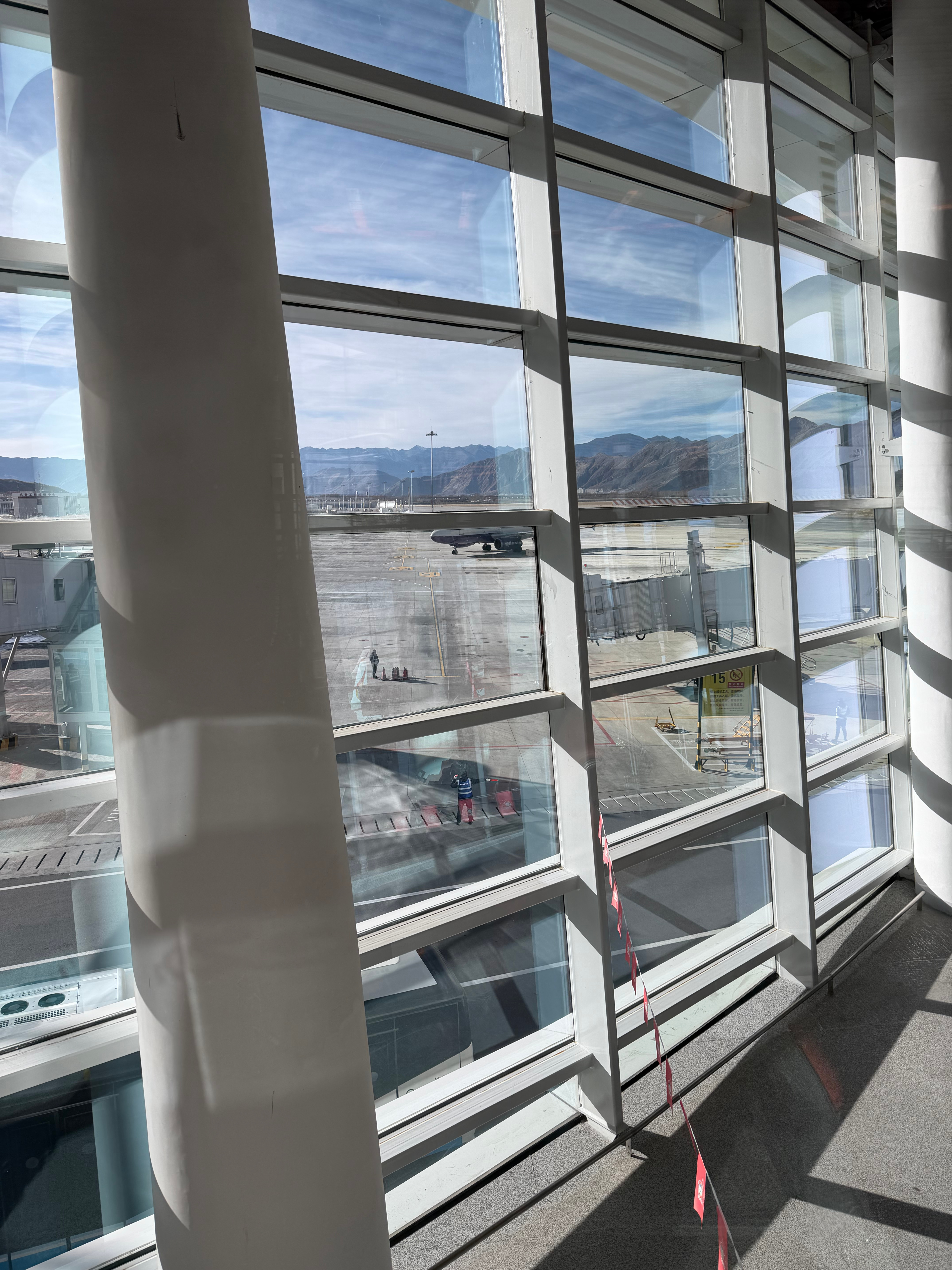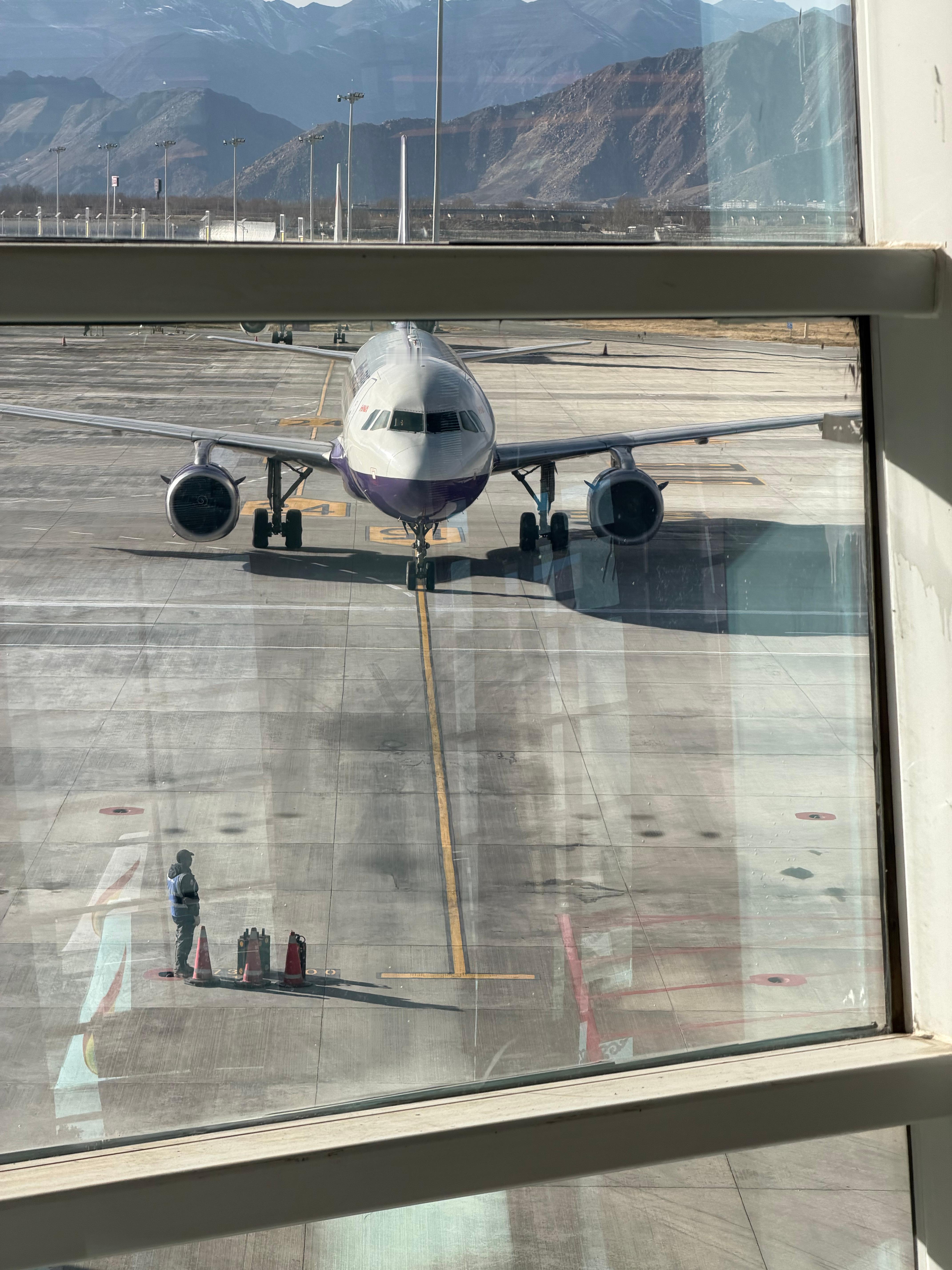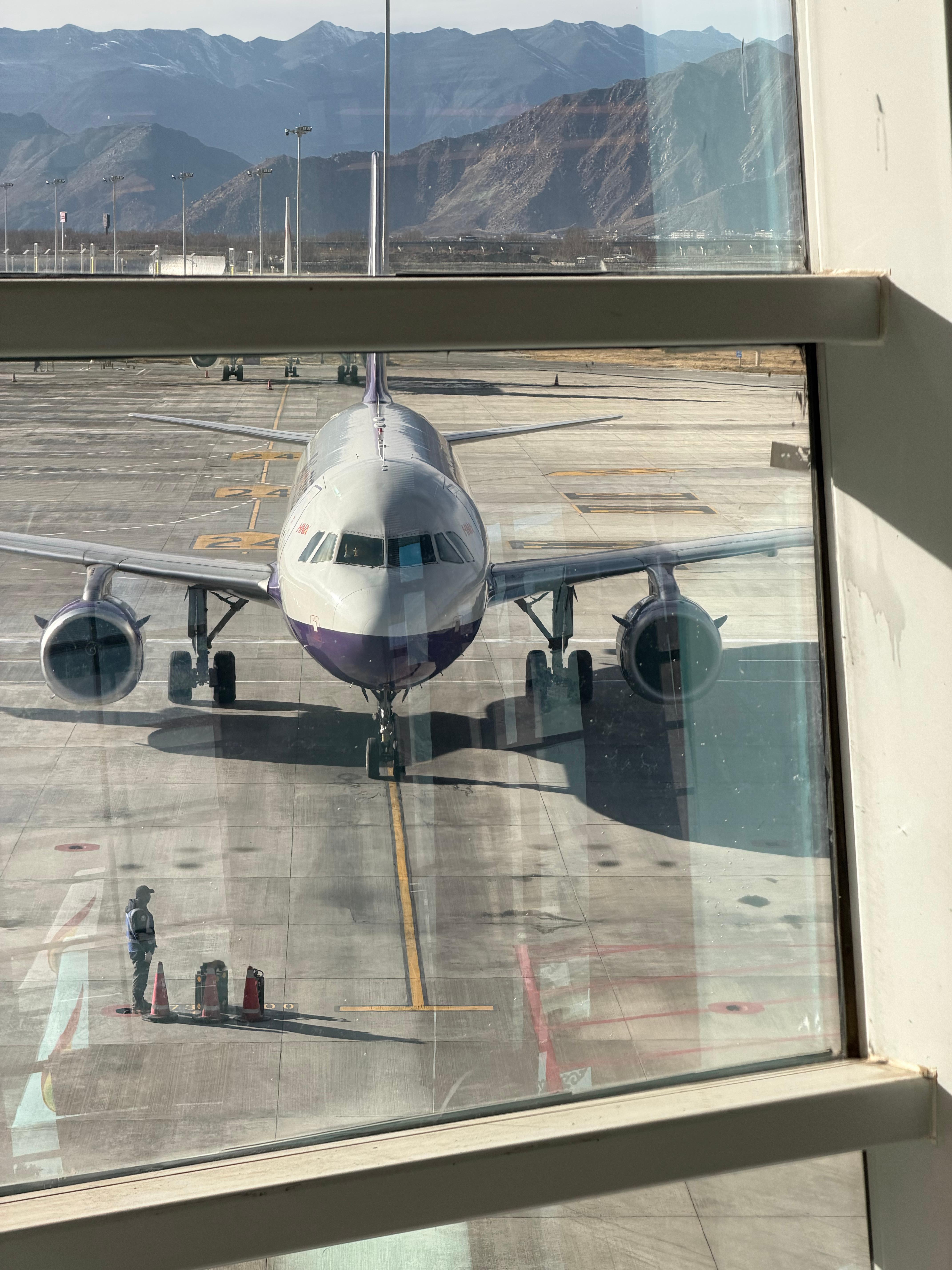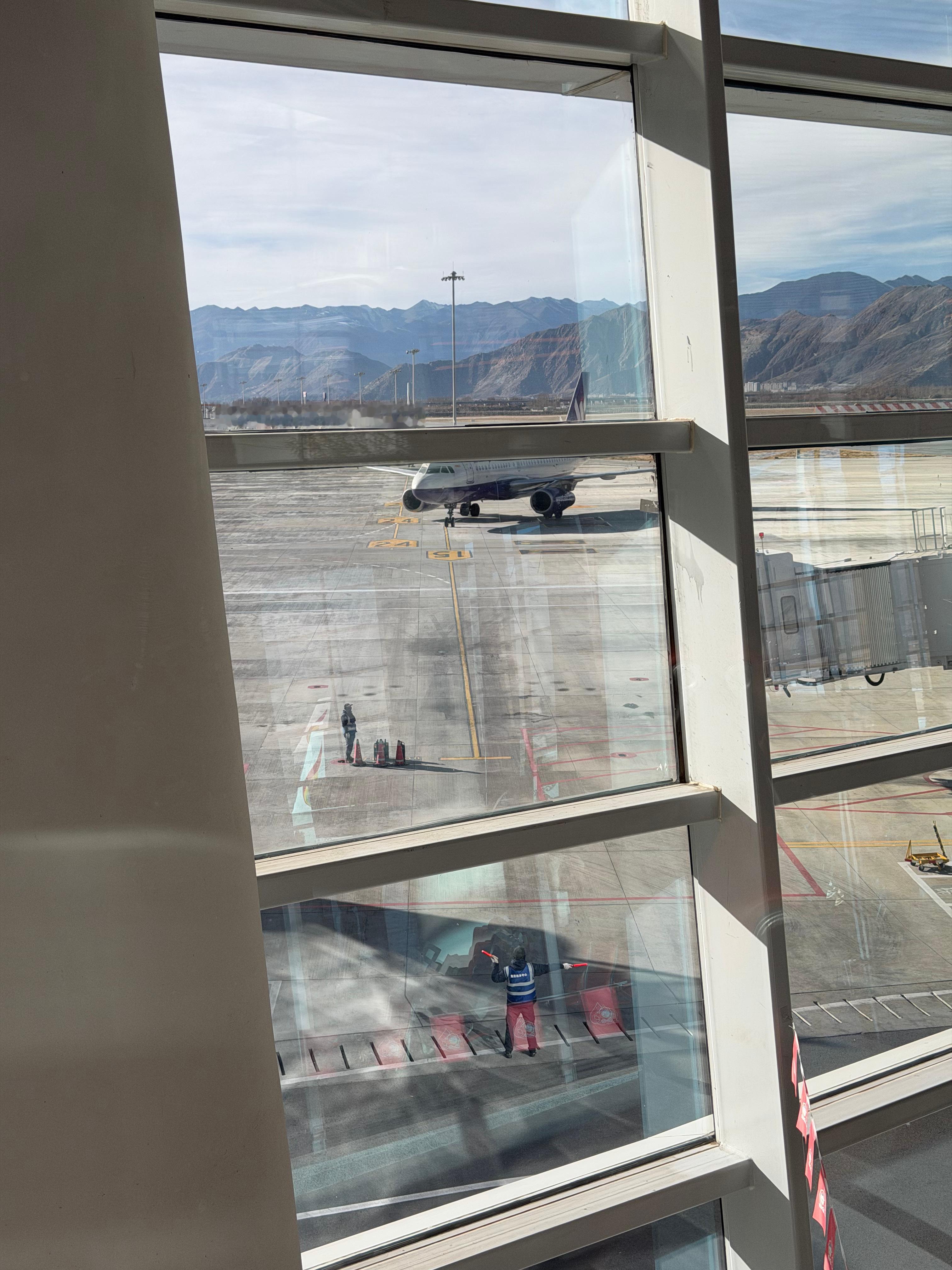 说真的,很喜欢不太大的机场,拉萨机场飞机落地以后都是自己开到廊桥的,不需要引导车,机长对位置熟的一匹,落地、下客、下行李、装行李、加油、上客到起飞,40分钟内完成,见过最高效的航班了,不带任何犹豫的 山南·拉萨贡嘎国际机场