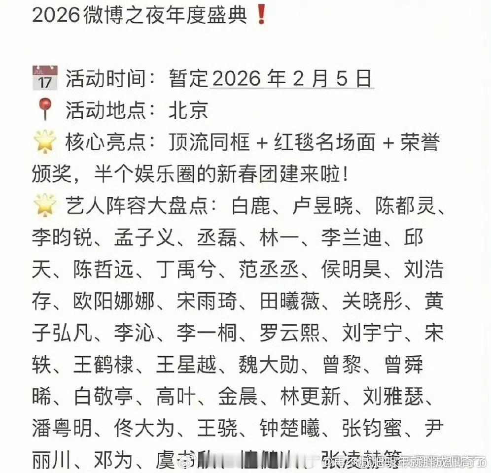 微博之夜邀请名单🈶总结:0个85花0个顶流…夹总会找大花撑场子的一般是李冰冰