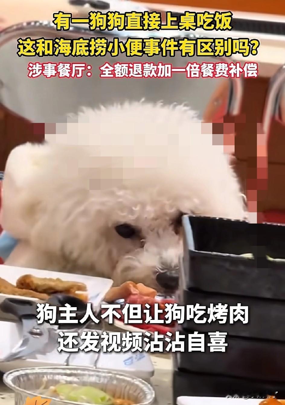 又见“狗上桌吃肉”,商家凌晨发布声明 事发近日合肥某商超,有网友拍到在一家烤肉店,白色泰迪堂而皇之趴在餐桌大快朵颐的画面! 有人说商家刚开业疏于防范情有可原,凌晨发声明的效率也值得夸,但这事儿的核心根本不是“给不给机会”! 餐厅是公共用餐空间,不是私人宠物乐园!猫狗身上的细菌、掉落的毛发,都是对其他食客健康和感受的漠视! 宠物友好绝不是无底线纵容,真正的爱狗人士,早该拎清“家里随便宠,外面守规矩”的分寸! 商家的整改承诺得实打实落地,而那位没公德心的养狗人,更该明白:你的“宝贝”,不能成为别人的糟心事!