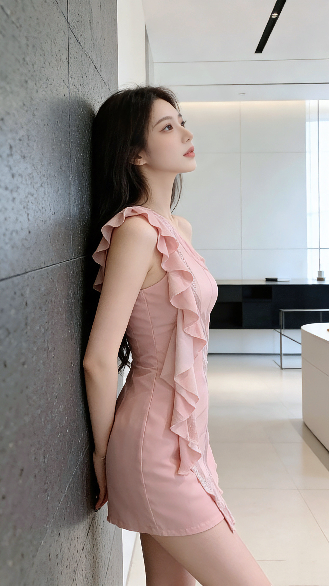 身着温柔粉裙,于简约空间静靠,不随波逐流,只绽放独属于自己的光。