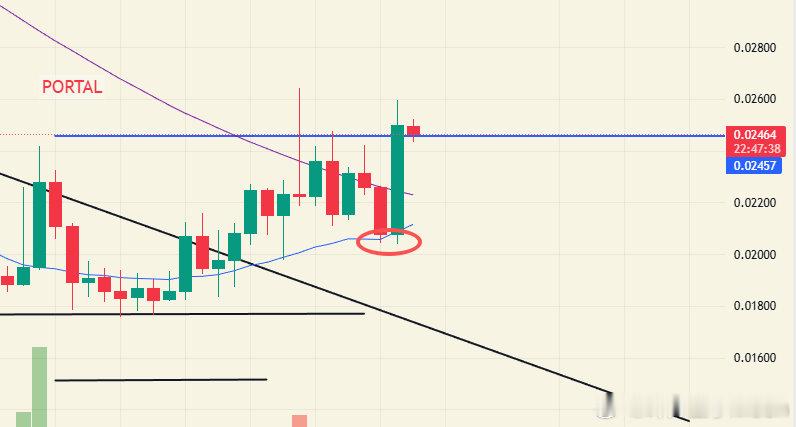 PORTAL昨天视频里说到日线回调20线支撑,直接拉升又回到了0.0245附近,直接上榜20个点,等待本次震荡完后继续上冲!币圈