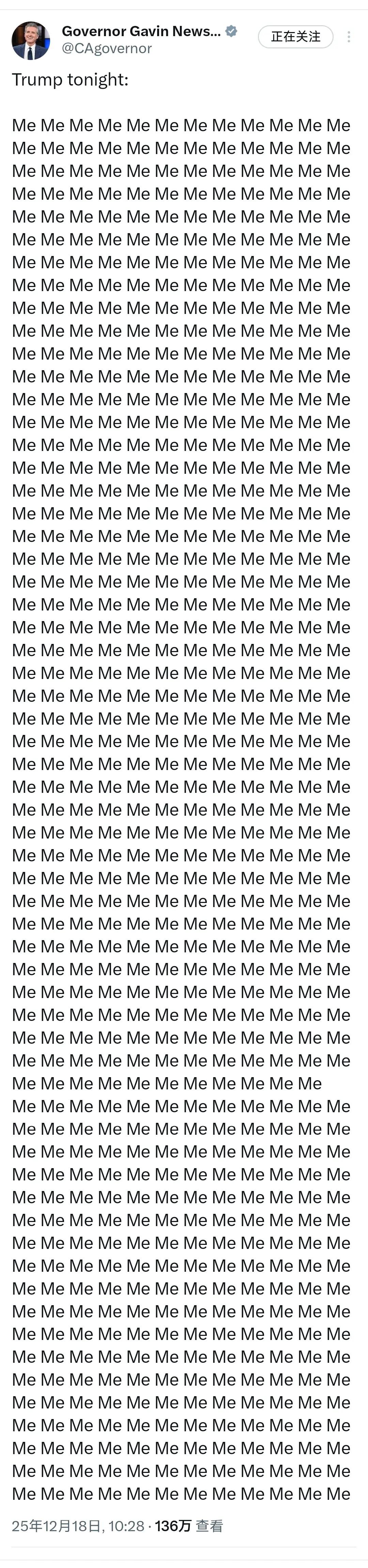 美国有线电视新闻网(CNN)今天(12月23日)报道:“美国总统特朗普公布了美国海军舰队的新型战舰,并将其命名为‘特朗普级’战舰。” 这才是特朗普好大喜功的行事风格。美国加州州长纽森12月18日用731个“我Me”讥讽特朗普的自吹自擂、自我标榜、自私自利、自我膨胀、自以为是、自命不凡……;也有网友担心,特朗普执政四年,“731个我”万一不够如何是好?