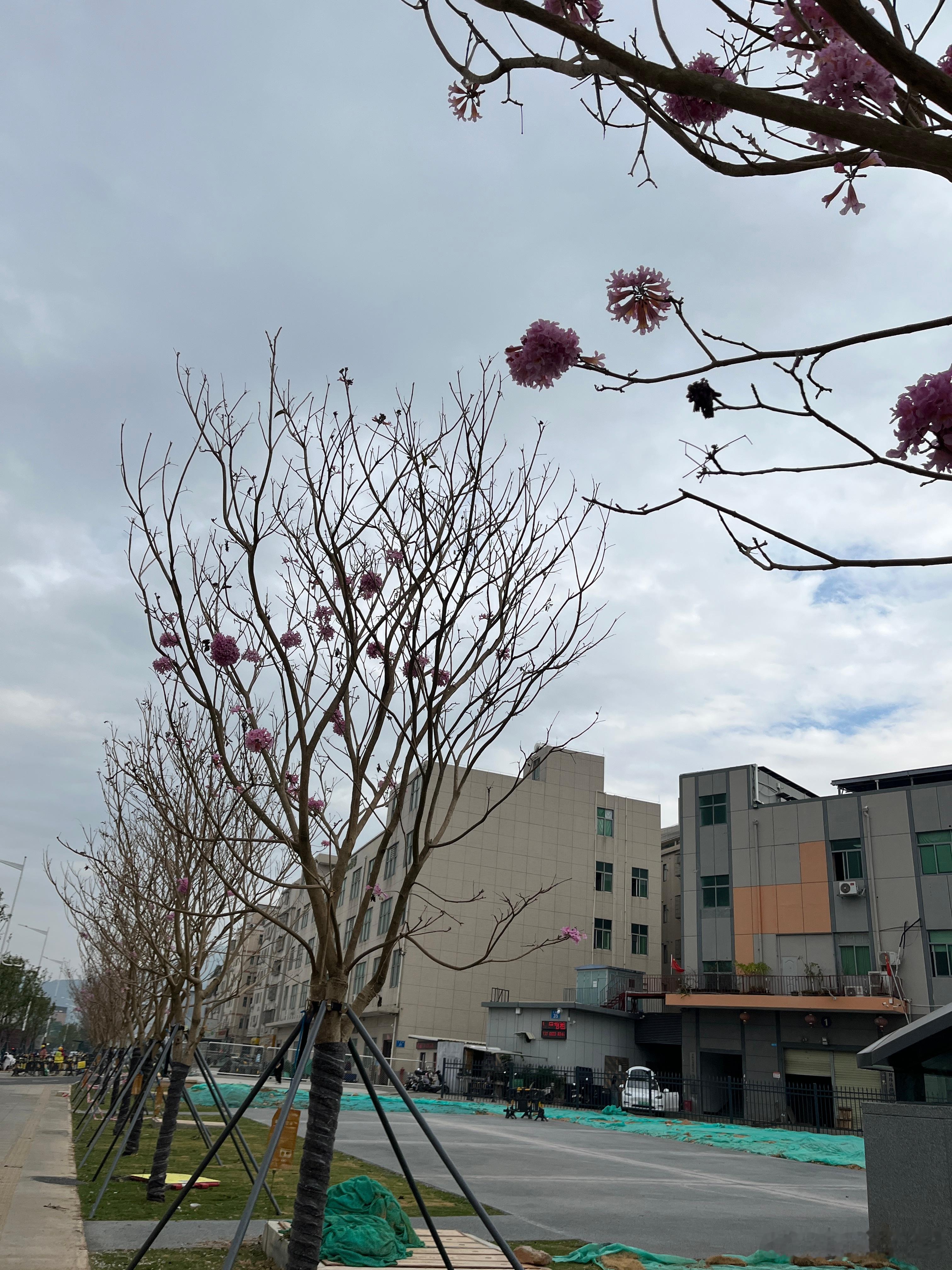 去接婆婆,体检报告出来了,路过地铁站这里,看到这些树开花了。我以为它不会开花的,因为种下去一个礼拜,都没有看到叶子,想不到没有长叶子也会开花。今天阴天,拍不出它的美,实物很好看。这是胡彦斌选易梦玲的原因吗恭喜,找到自己爱的那个人。