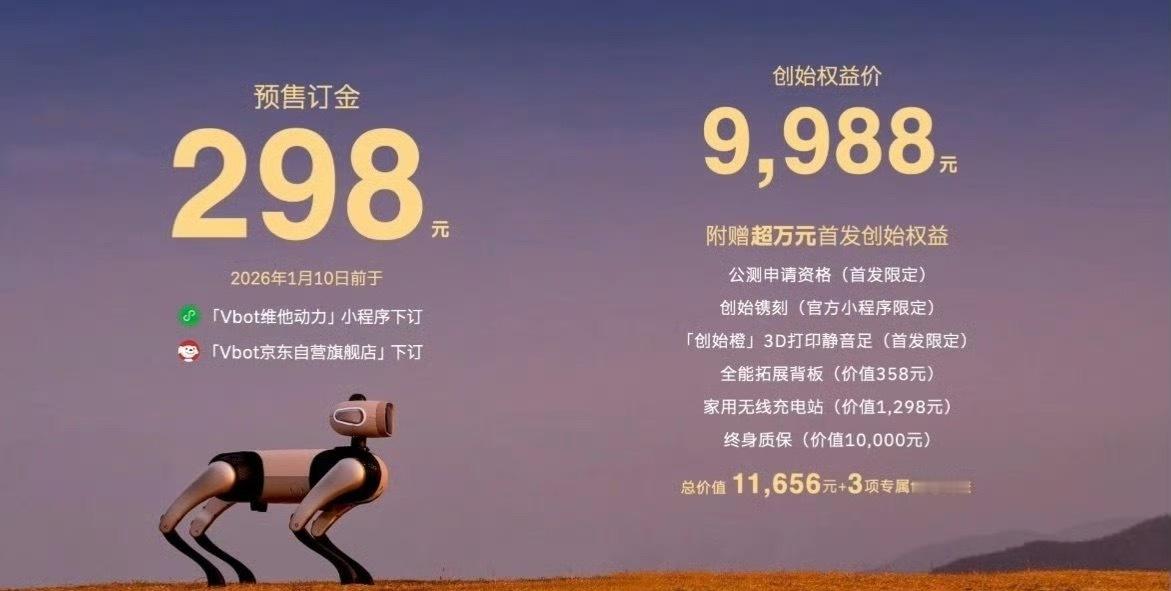 1. 给机器狗大头 BoBo 下个小定,我就开了个会的功夫订单号排到 737 了,2. 这是我 26 年最想要的产品之一,另一个是 3D 打印机,3. 对于大头,我认为做的特别好的一点是小脑能力+随行功能,也可以理解成“低速自动驾驶能力”,这给了机器狗带进家和带出门基础保障,4. 买这个多少要有点儿社牛体质,只要带出门,你肯定全小区最靓的仔5. 这点非常重要,评测视频下午上线,大家别忘了来看