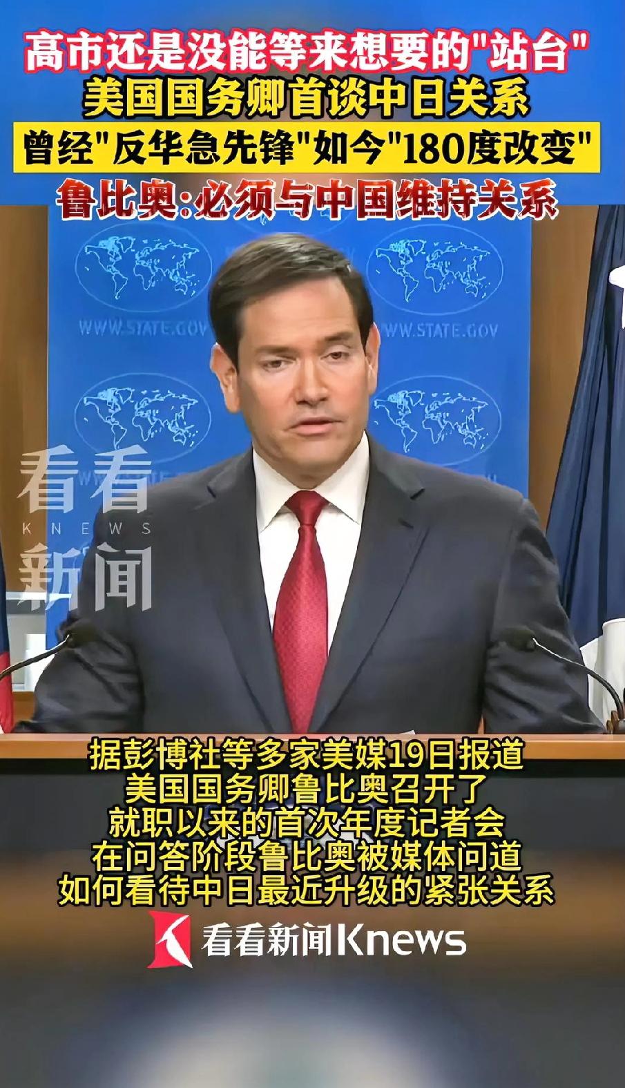 高市亲信扬言拥核,中方无视访华请求,鲁比奥出来打圆场,中俄朝齐声反对,美国到底在纠结什么? 目前,距离明年1月20日的日本经贸代表团访华时间只剩下不到一个月,但中国仍迟迟没有对日方的访华请求做出回应。上个月28日和本月19日,日本经济界人士已经至少两次拜访中国驻日本大使吴江浩,但都未得到准确答复。11月30日,吴江浩大使曾在《人民日报》发表题为《坚决维护一个中国原则和战后国际秩序》的署名文章,严厉批评高市早苗的挑衅言论是“误判形势、悖逆潮流、撞上南墙”。这篇文章发表后,日本国内对高市早苗的批评声逐渐增多,12月16日高市参加国会答辩时,频繁遭到嘘声和抗议,一度导致电视直播被迫中断。面对国内外的强大压力,高市不得不在17日做出所谓的“反省”表态,承认自己的涉台言论超出了官方立场,“这一点值得反思”。她还在18日向中方提出对话请求,称日方的大门从未关上。 但这些举动都未能打动中方,因为高市的“反省”明显缺乏诚意,她的亲信甚至还在18日发表了“拥核”言论,引发中俄朝三国齐声反对,日本前首相石破茂也公开表示,日本拥核绝无好处。而就在这个时候,美国国务卿鲁比奥出来打圆场了,他在19日的年终记者会上,首次提及近期发生的中日对立问题,称“即便中日两大亚洲经济体紧张局势加剧,美国仍有信心在与日本保持紧密联系的同时,与中国开展富有成效的交往。”鲁比奥还强调,中美关系需要取得平衡,但这种平衡不会损害美国对日本等盟友的“坚定承诺”。 日本政坛最近扔出一颗“试探气球”。一位核心官员竟在私下场合议论:“日本不该考虑拥核吗?” 话音刚落,又忙不迭地找补,政府也出来澄清。可谁都知道,这绝非口误。这分明是一场精心设计的“压力测试”。 他们在试探什么?无非是国内民意的容忍度,以及国际社会的红线。现任政府被曝光正谋划修改安保战略,想给“无核三原则”凿开一道缝,允许美国核武器进来。 历史的幽灵,从未真正离去。 日本国内立刻炸了锅。在野党厉声谴责,前首相野田佳彦直言:“此人必须辞职!”长崎核爆受害者的后代们悲愤难平,那段惨痛记忆难道已被遗忘? 可网络调查里,竟有大量年轻网民表示支持。历史认知的断层,比任何武器都更危险。 技术上可行吗?日本手里囤着47吨分离钚,足够造出几千枚核弹。它的火箭技术,改装成导弹轻而易举。日本共产党政策委员长山添拓的批评掷地有声:“拥核论者,没有执政的资格!” 中方的回应,是斩钉截铁的沉默。日本商界领袖们心急如焚,为了明年一月的访华行程,一次次求见中国大使。 然而,大门依然紧闭。这不是外交怠慢,而是原则问题。当高市早苗公然将台湾与日本“存亡”捆绑时,对话的基础已被她自己彻底摧毁。 中国外交部发出严正警告。在联合国会议上,中方代表因日方屡次蛮横打断发言,愤然离席。 行动就是最好的语言。核心利益,没有任何讨论余地。 朝鲜的反应更为激烈,直斥日本为“战犯国家”。这个称呼,撕开了历史伤口,指向了未被彻底清算的侵略罪行。 俄罗斯也明确反对,暗示将采取反制。中俄朝三国的共同反对绝非偶然,这是对日本右翼危险倾向的共同警惕,是对战后秩序的坚定捍卫。 最值得玩味的,是美国的态度。国务卿鲁比奥在记者会上大谈平衡术,既要紧密联系日本,又要和中国搞好关系。 话说得滴水不漏,实则充满算计。美国国务院夸日本是“核不扩散榜样”,却绝口不批评其拥核言论。这矛盾的背后,是深深的战略焦虑。 美国需要日本制衡中国,但又害怕日本拥核自立,最终反噬自身。广岛长崎的原子弹记忆,是美日关系里一根永远的刺。 高市早苗政府显然打错了算盘。对内经济乏力,就试图炒作安全议题转移矛盾;对外献媚讨好,却未换来美国的真心支持。 这种政治冒险,正在付出代价。中日贸易额超过3000亿美元,日本对华投资累计逾1300亿美元。庞大的经济利益,岂能被政治短视所绑架? 经济界的焦虑日益加深,他们的务实呼声,在政治狂热面前显得如此微弱。 这场风波映照出东亚的深层困境。日本部分势力迷恋“武力捷径”,幻想通过获得极端力量来提升地位,这与发展合作、共同安全的地区主流路径背道而驰。 美国的纠结,则暴露了其霸权战略的内在矛盾:既要盟友当马前卒,又怕盟友失控。这种“离岸平衡”的把戏,终将难以维系。 历史早已给出答案。二战后的和平与核不扩散体系,是人类共同的宝贵遗产。任何动摇这一基石的行为,都是危险的倒退。 对于日本而言,真正的出路在于彻底反思历史,以诚意重建与邻国的信任。核武器换不来尊重,只能换来更深的孤立与对抗。 东亚的未来,需要的不是恐怖的军备竞赛,而是共同发展的智慧。这条路虽然漫长,却是唯一的光明之途。 各位读者你们怎么看?欢迎在评论区讨论。