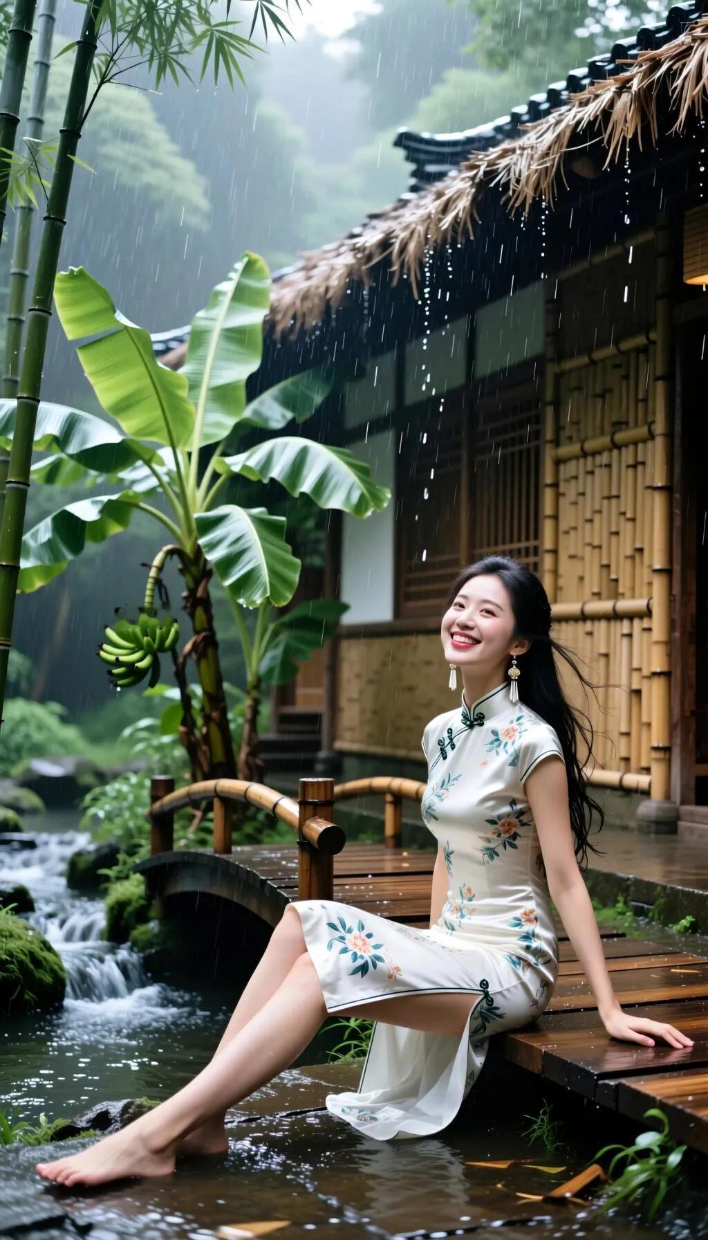 清新脱俗的少女,浅绿色旗袍,优雅动人