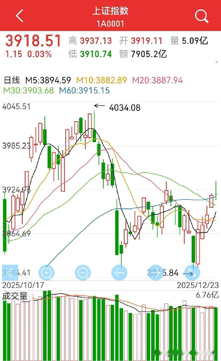 冲高回落,反弹结束了? 周二盘中达到了预期,但收盘居然回落这么多… 对于周三,一根小阴线早就“准备好了”,毕竟五连阳了,结果周二就有点迫不及待的下来了。 周三,应该还是会收一根小阴线。 那么,是不是反弹结束了呢? 或者说又如月初甚至象中旬那样调整? 个人认为,不会! 还是坚持接下来大多数时间在60日均线上方运行。 板块上,芯片、军工最先调整,电池也一样处于中期调整后的筑底阶段,大金融近期可能会控制着盘面。 总体上,板块轮动比较快,这也是机构最后的调仓动作。 后市,中期调整(机构调完毕)结束,主升浪启动之时,应该还会挖一个坑,然后启动主升浪。 时间应该在1~2月期间,个人感觉在春节前后。