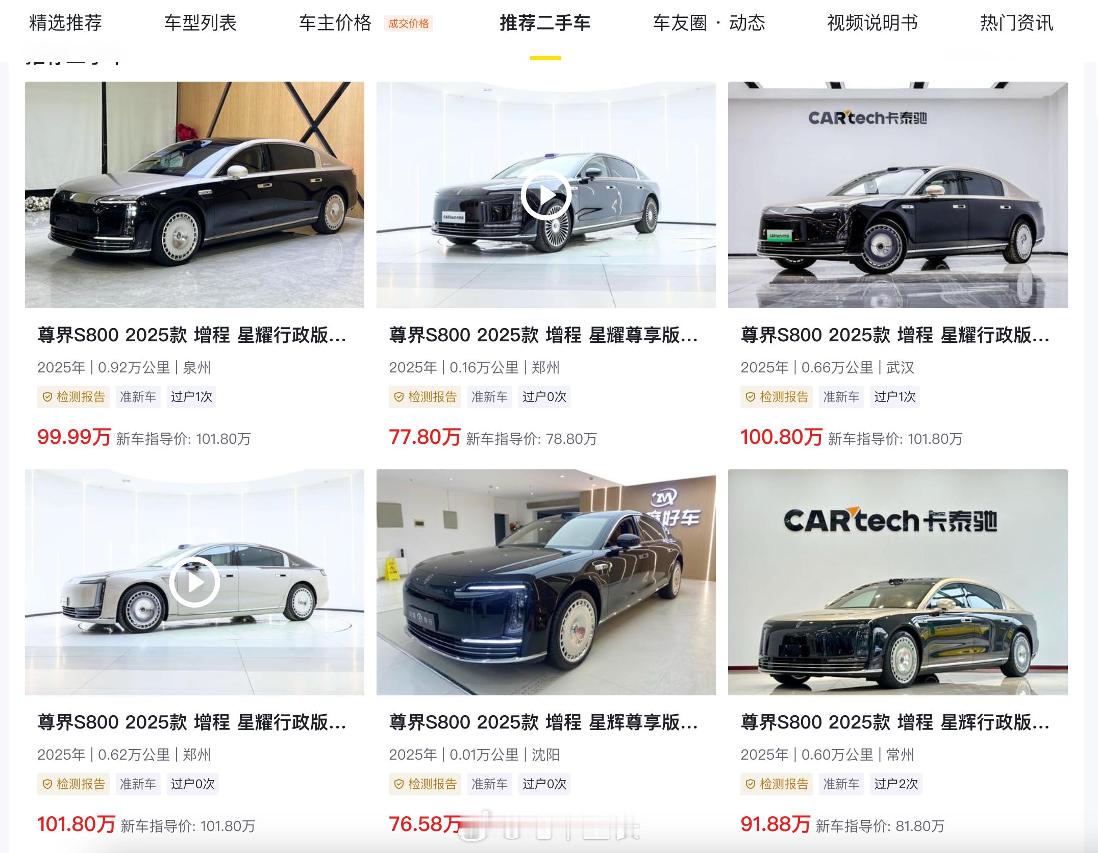 辛苦了一年,想开个豪车回家过年,第一时间想到了尊界S800但是这个二手车价格会不会太稳了有车主还把购置税和之前的权益算上了直接加价转卖