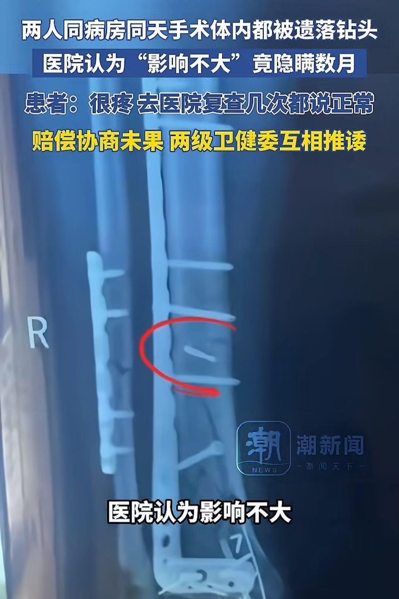 离了个大谱!湖南,两人同病房同一天手术,体内都被遗落钻头,医院认为影响不大,竟隐