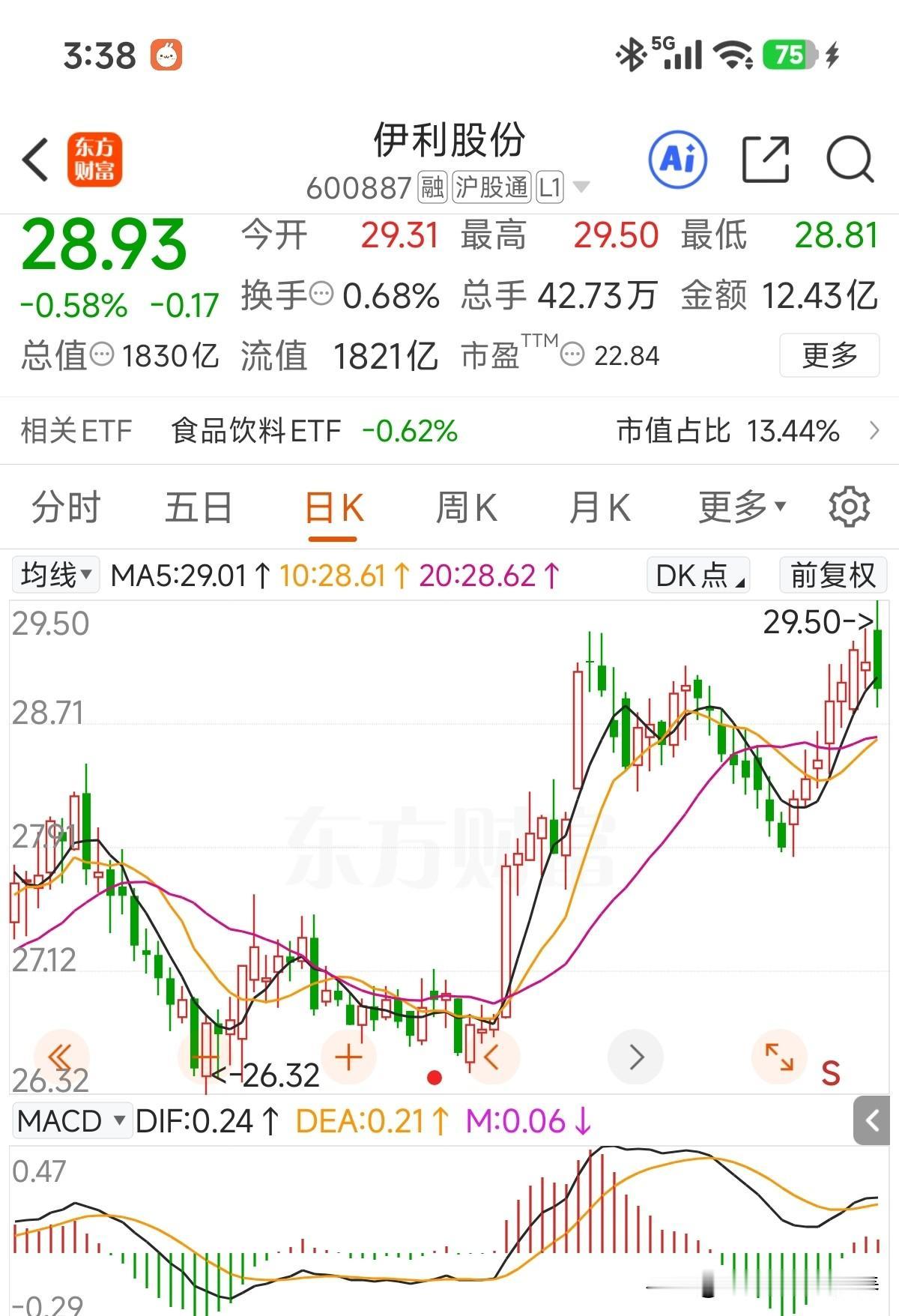 今天最高冲到29.5元,创了年内新高!遗憾的是冲高回落,终结7连阳! 技术层面仍还是在震荡箱体内,目前成交量一次性突破有难度,但从基本面上看,目前估值还是有不少吸引力!产品矩阵越来越强大,利润再创新高!投资者回报丰厚!继续坚守等待估值修复!