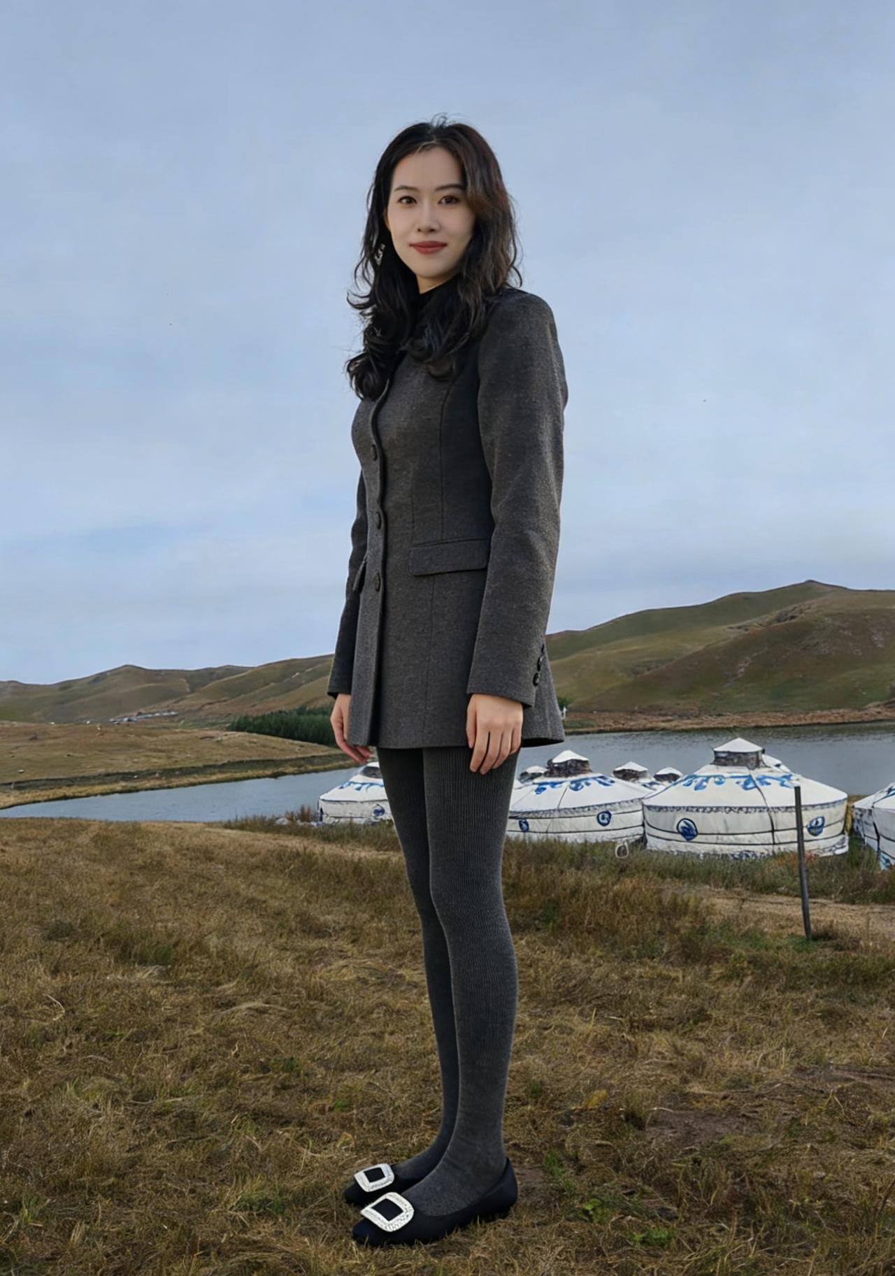 灰色西装是职场驰骋的铠甲 穿在草原的风里,显得有些格格不入 高跟鞋叩击着草地,敲碎了旷野的寂静 发丝卷着,是都市精致的余温 ~ 蒙古包的白,晃得人睁不开眼 湖水映着我的身影,一半干练一半柔软 我伸手触摸风里的草香 像触摸另一个被藏起的自己 ~ 职场的规则,是西装的针脚 密不透风,却在旷野里松了丝线 草原的辽阔,是无声的邀请 让铠甲下的温柔,悄悄探头 ~ 我站在湖与草原的交界 看着西装的影子,在草甸上慢慢舒展 原来所谓身份,不过是披在身上的衣裳 风来,便能卸下所有伪装