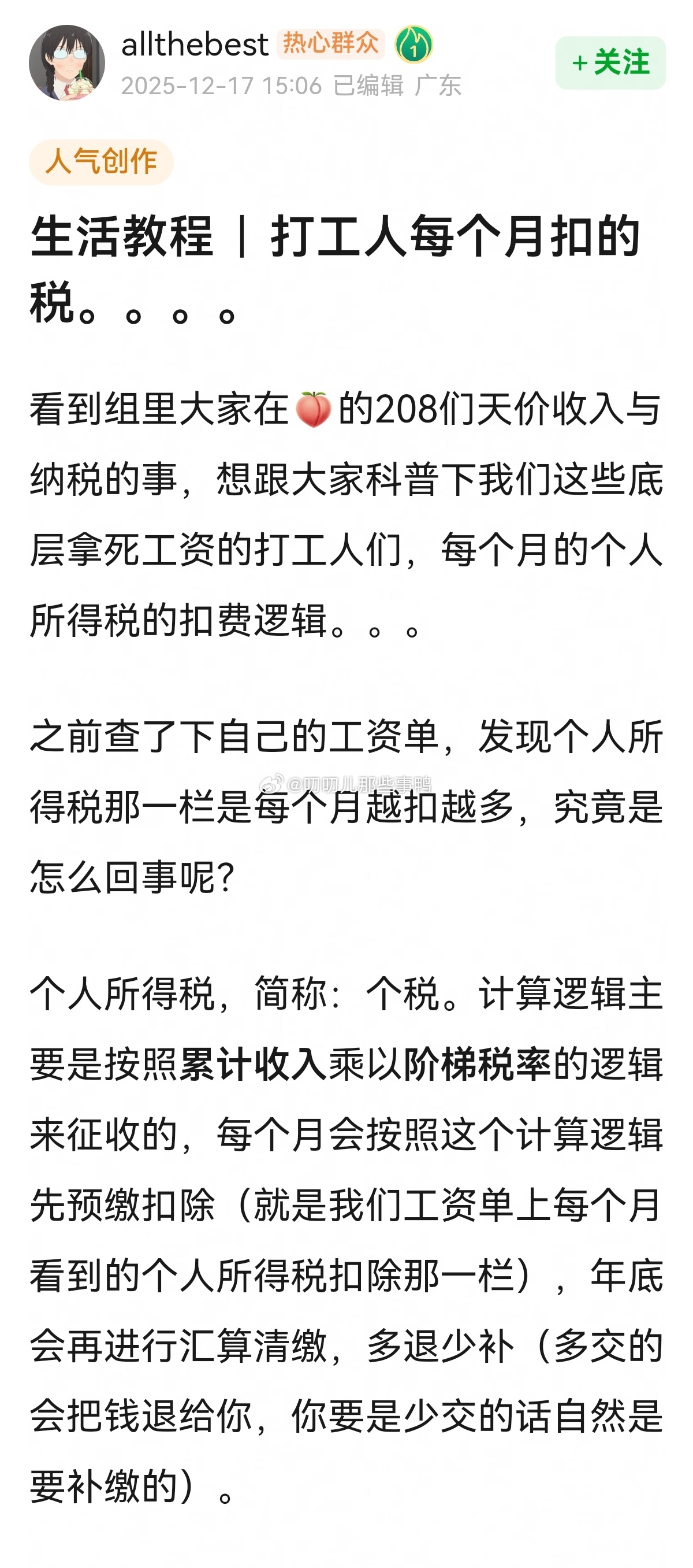 这个帖子收藏了→打工人每个月扣的税~