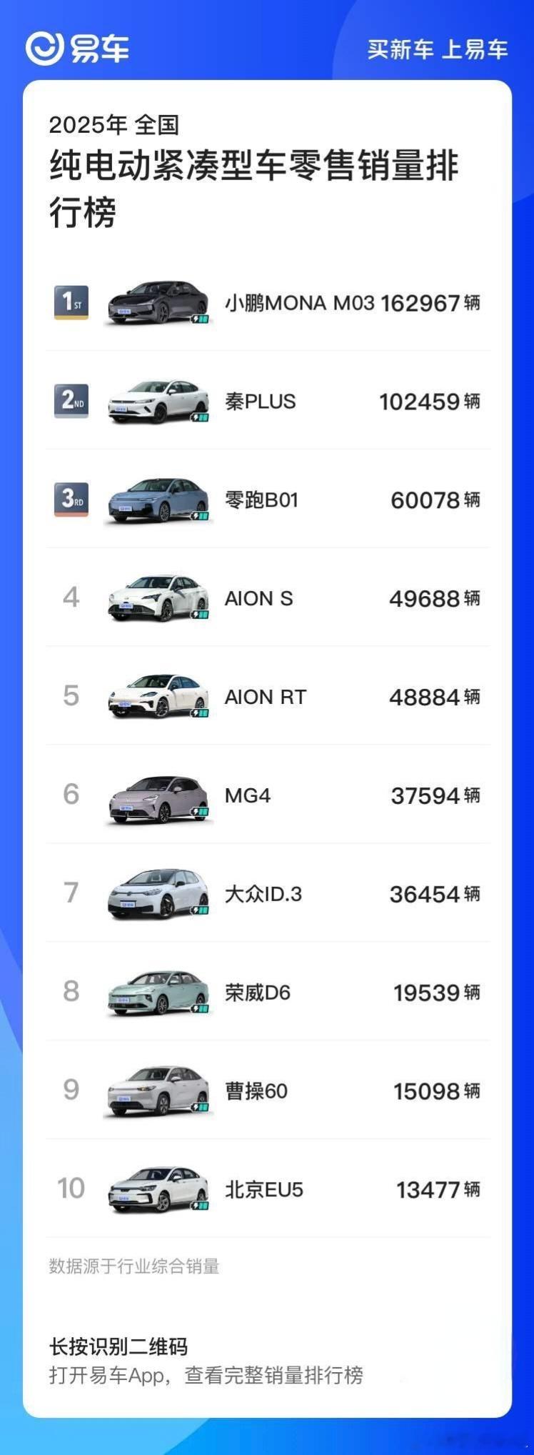 小鹏今年部分车型的销量还是很亮眼的看了一下25年纯电车型的销量榜单纯电紧凑型销量榜小鹏MONA M03排第一纯电中大型销量榜小鹏P7+排第二两款都是主打年轻、智能、大空间、高性价比卖的好也不是没道理为什么路试车要用条纹伪装小鹏汽车新能源汽车小鹏汽车