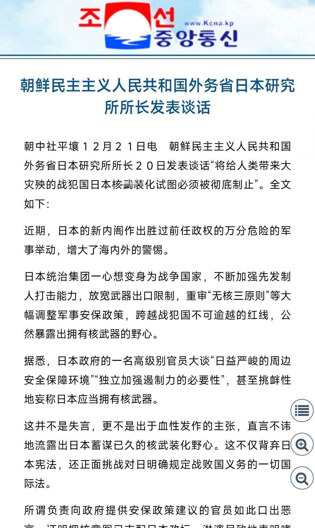 日本高官再谈“拥核”,中俄朝集体猛批,中方发声最早,朝鲜骂得极狠 21日的东京电视演播室里,自民党前防卫相小野寺五典对着镜头敲了敲桌面:“依赖美国核保护伞不是长久之计,该好好讨论‘无核三原则’了。”旁边的维新会安保调查会长前原诚司立刻前倾身体附和:“必须彻底审查这项原则。”这场看似普通的政论节目,成了半个月内日本执政党第三次公开触碰核禁忌的舞台。 朝鲜的回应像一记耳光,当天就扇了过来。朝中社的评论文章里,“战争罪犯国家”五个字加粗排版,紧随其后的是更尖锐的指控:“日本距离拥核只剩政治决断,核灾难的阴影正再次笼罩亚洲。”这种近乎咆哮的措辞,比任何外交辞令都更直白地撕开了日本政客的伪装。 中国外交部早在19日就拉响了警报。发言人在例行记者会上特意停顿两秒,强调“国际社会必须高度警惕日方的危险动向”——这个“最早发声”的动作,像一声集结号,让后续的反制形成了合力。转天,俄罗斯副外长鲁坚科的声明更不留余地:“明确反对任何探讨日本拥核的议题。” 这究竟是政治投机,还是战略误判?有分析指出,日本近期密集炒作核议题,或许与自民党内部修宪派的推动有关;另一种观点则认为,这可能是为了在对美谈判中争取更多安保筹码——但无论动机如何,把地区安全当筹码的行为,注定要付出代价。 自民党近年来不断试探战后秩序的底线,从修改安保法案到增加防卫预算,如今又把主意打到“无核三原则”上。这种步步紧逼的右倾化,与其说是为了“国家安全”,不如说是想撕掉“和平宪法”的最后一块遮羞布。 当北京的冷静警告、莫斯科的强硬红线、平壤的激烈痛斥交织在一起,日本政客突然发现:他们以为能轻易跨过的“核门槛”,其实站满了警惕的邻居。短期看,东北亚的安全对话可能因此降温;长远来说,任何试图动摇“无核”共识的举动,都只会让周边国家的戒备心越筑越高。 从演播室里的轻率发言,到三国同声的严厉反制,这场围绕“核”的博弈早就不是日本一家的独角戏。历史课本里关于广岛长崎的图片还没褪色,谁也不会允许那个给亚洲带来深重灾难的国家,再握着核按钮走向舞台中央。这条“作死之路”,注定走不到尽头。