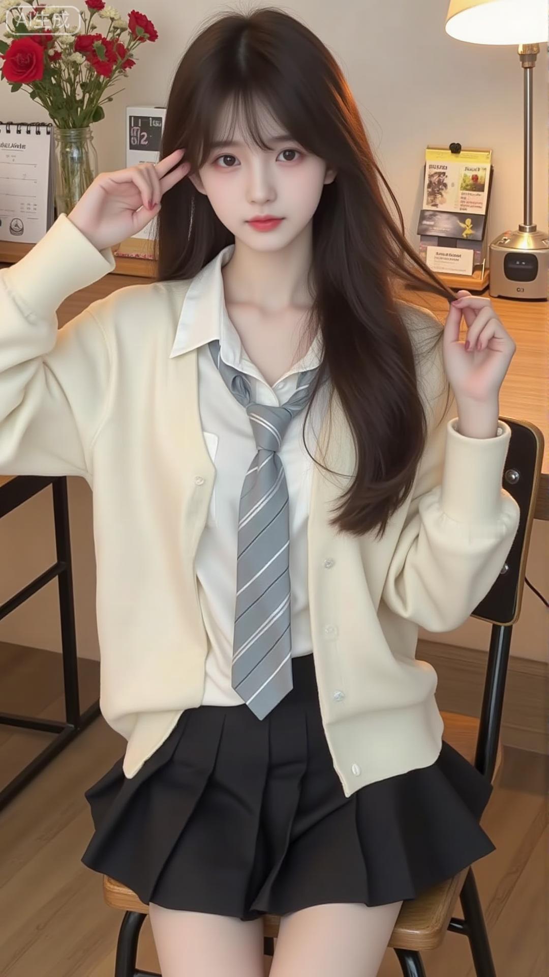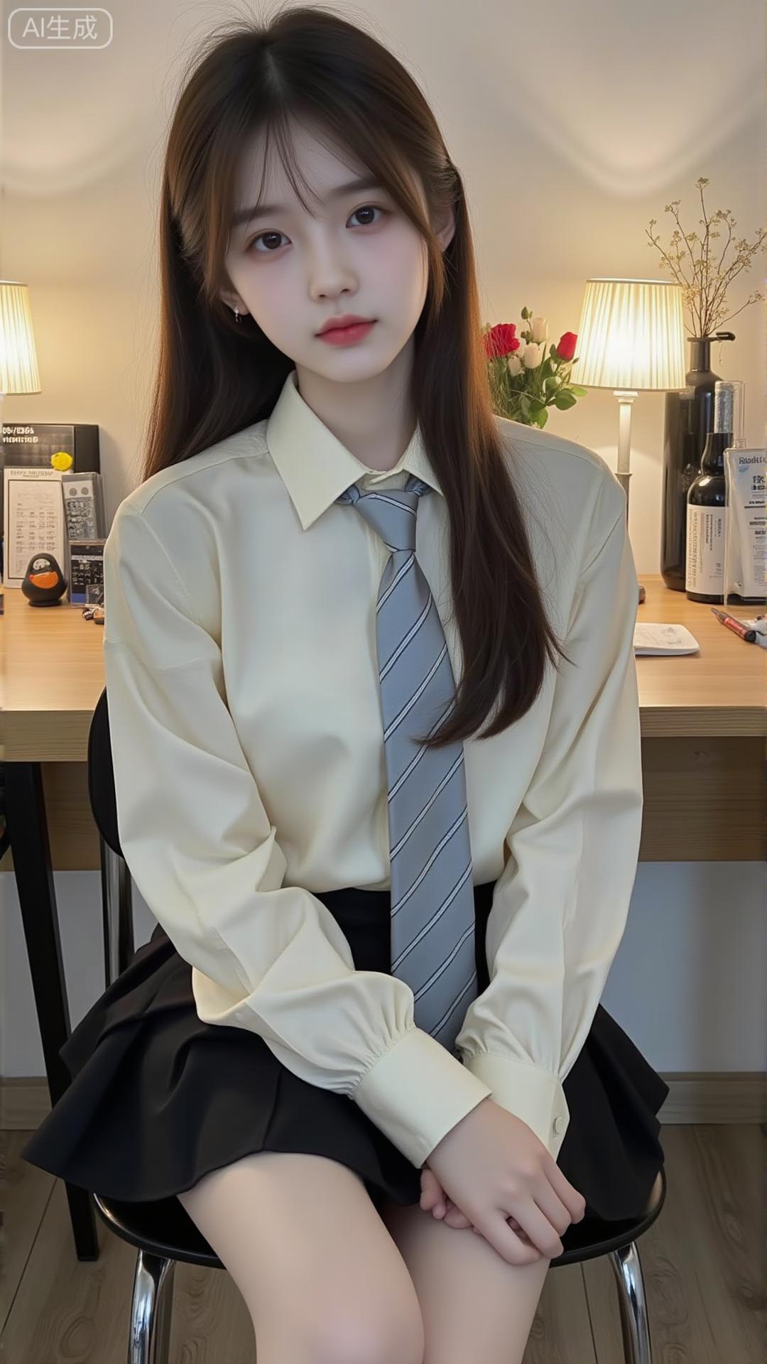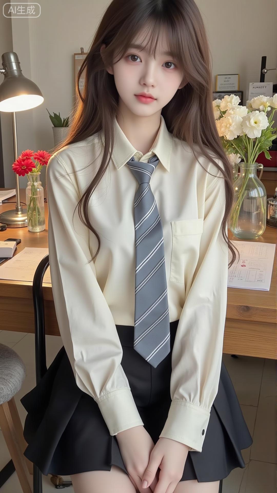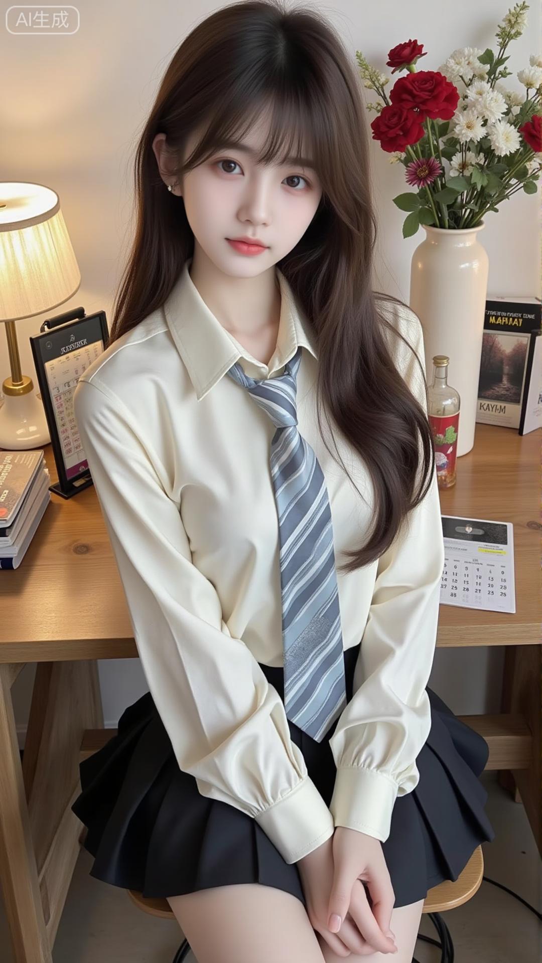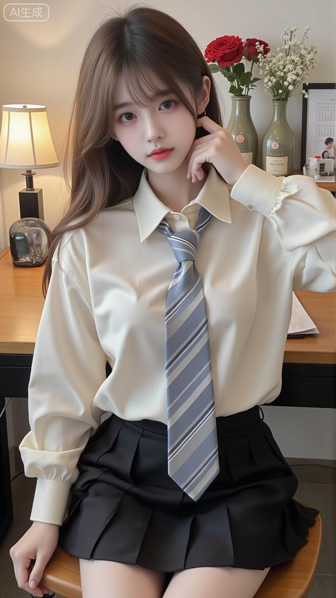 奶白衬衫+黑百褶裙,学院甜乖感拉满 奶白缎面衬衫配灰条纹领带,泡泡袖添柔感,搭黑百褶裙,坐在书桌前又乖又甜,是减龄又精致的学院风穿搭✨白色印花衬衫裙