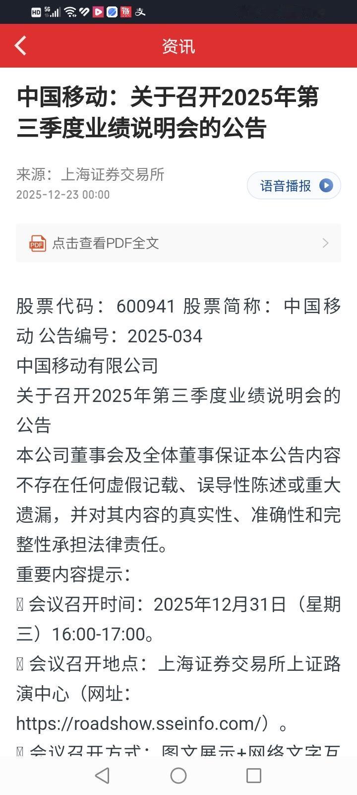 咱小散永远也逃不出自个的宿命。我的宿命就是喜欢追跌杀涨,逆向操作。这不,今天又手痒了,逆势买入了中国移动。 看中国移动动态市盈率才14.21倍,股息率高达4.7%,而且股价急跌了近9%,咱嫩是觉得它哪哪都香,今天总算以100.86元买上了。 不破不立,很可能中国移动股价还得去破一下白元关口才算圆满,咱可能又买早了。 中国移动股价跌到何处才是底?这个答案只有事后走出来才知道,但按咱的分析,中国移动应该离底部不远了。 过几天是中国移动三季报业绩说明会,新任董事长会首秀,会否是股价的重大转机呢?