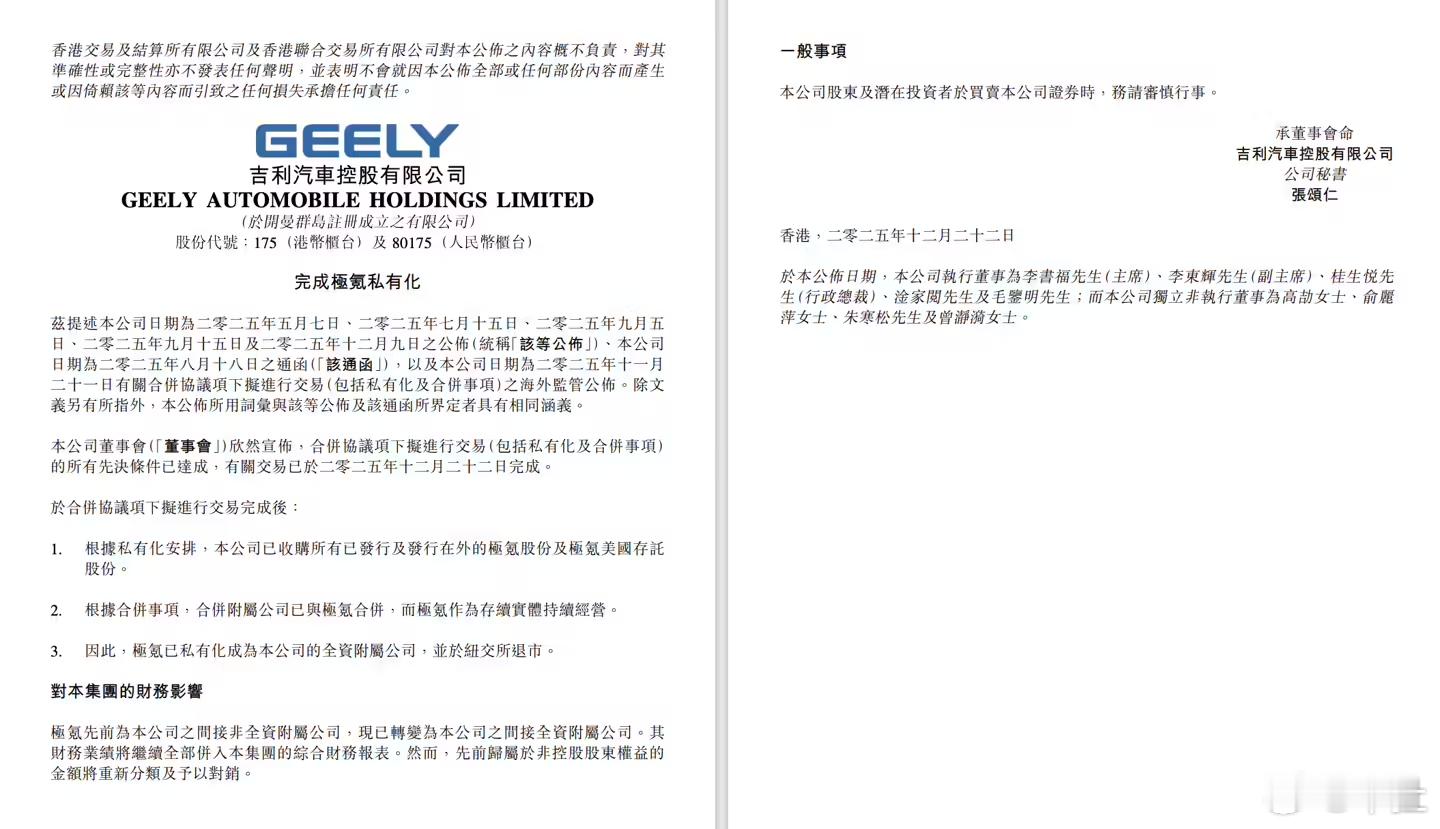 吉利极氪合并落定 核心管理层架构调整完毕2 月 23 日,蓝鲸汽车从吉利汽车相关高管处获悉,伴随吉利与极氪合并工作的收官,双方合并后的核心管理层调整也已全部完成,全新管理分工明确落位。具体人事安排如下:李东辉出任吉利控股集团副董事长,主抓董事局日常运营及集团层面投融资相关管理工作;安聪慧履新吉利控股集团首席执行官(CEO),全面统筹集团整体运营管理事宜;桂生悦继续担任吉利汽车控股有限公司行政总裁(CEO)及执行董事,执掌相关业务;淦家阅则担任合并后的吉利汽车集团 CEO,同时仍兼任吉利汽车控股有限公司执行董事一职。吉利极氪