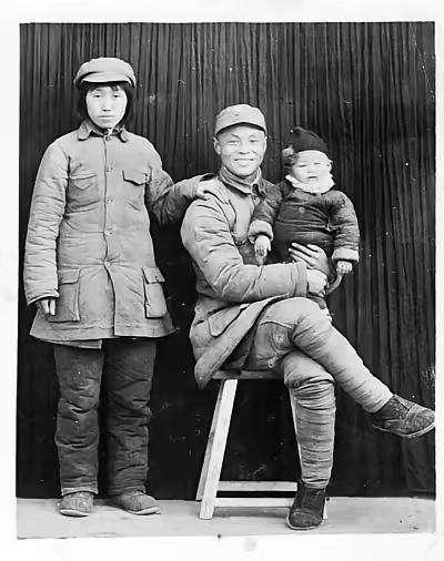 这是1944年延安的一张全家福:晋察冀军区骑兵团团长范昌标坐在木凳上,怀里抱着年幼的长子范峪森,妻子齐勇(野战旅骑兵团卫生所调剂员)站在一旁,手臂轻搭在丈夫肩头,三人都穿着洗得发白的粗布军装 照片里的粗布军装,袖口磨出了毛边,领口还打着补丁,那是范昌标穿了三年的旧衣裳。1941年反扫荡战斗里,这件军装的下摆被日军的子弹打穿了一个洞,血渍渗进去,洗了十几次都没完全褪掉。齐勇的军装更合身些,却也沾着淡淡的药草味,卫生所里的伤员多,她每天要配药、换药,衣裳上的味道洗都洗不掉。范峪森被父亲抱在怀里,小脸蛋圆圆的,身上裹着一件改小的军装褂子,那是齐勇用丈夫的旧军装连夜缝改的,针脚歪歪扭扭,却透着说不尽的温柔。 范昌标是骑兵团的老兵,1937年就跟着部队转战晋察冀。他的战马叫“黑子”,是匹跟着他打了五年仗的老马,每次冲锋都跑在最前头。1943年的一次伏击战,黑子替他挡了一颗炮弹,后腿被炸伤,范昌标抱着马脖子哭了半宿,后来硬是把黑子从鬼门关拉了回来。齐勇和范昌标是在战地医院认识的,那年范昌标带着骑兵突袭日军据点,左臂中弹,是齐勇给他换的药。她看着这个满身是血却还笑着说“小伤”的团长,心里就烙下了他的影子。后来两人走到一起,婚礼简单得只有一碗小米粥,连块红布都没有。 1944年的延安,日子过得紧巴巴。粮食定量供应,每人每天只有二两小米,菜是腌萝卜干,偶尔能吃上一顿土豆,就算是改善伙食。范昌标每次从前线回来,都会把省下的口粮塞给齐勇,自己啃着干硬的窝头。齐勇也不跟他争,把口粮分成三份,最多的那份留给年幼的儿子,剩下的再和丈夫分着吃。照片拍摄的那天,是范峪森的两岁生日,齐勇攒了半个月的粗粮面,蒸了个小小的窝头,上面还插着一根从野地里摘的狗尾巴草。范昌标特意跟战友借了一把木梳,把齐勇乱糟糟的头发梳得整整齐齐,又把儿子的衣角抚平,这才抱着孩子坐在了窑洞门口的木凳上。 拍照的是边区照相馆的师傅,背着一台老旧的照相机走了二十里山路。那天阳光正好,洒在三人身上,暖融融的。范昌标平日里在战场上叱咤风云,对着镜头却有些拘谨,嘴角抿着,眼神里却藏着笑意。齐勇站在一旁,手臂轻轻搭在丈夫肩头,看着镜头的眼睛亮晶晶的,那是她嫁给范昌标两年,第一次拍全家福。范峪森不懂什么叫拍照,只是好奇地盯着照相机上的镜头,小手还抓着父亲胸前的纽扣。 这张照片洗出来的时候,只有巴掌大,范昌标把它小心翼翼地揣在军装内侧的口袋里。后来转战的时候,他带着这张照片打过无数次仗,口袋被磨破了,就缝了又缝。1945年日军投降的那天,范昌标从口袋里掏出照片,和齐勇、范峪森一起看,三个人对着照片笑出了眼泪。照片里的延安窑洞、粗布军装、木凳,还有一家三口的笑容,成了那个战火纷飞的年代里,最温暖的记忆。 这张泛黄的全家福,定格的不只是一个家庭的瞬间,更是一代革命军人的家国情怀。他们穿着洗得发白的军装,揣着保家卫国的信念,在艰苦的岁月里守着小家,护着大家。每一道补丁、每一缕药草香、每一个笑容,都藏着烽火岁月里的温柔与坚韧。各位读者你们怎么看?欢迎在评论区讨论。
