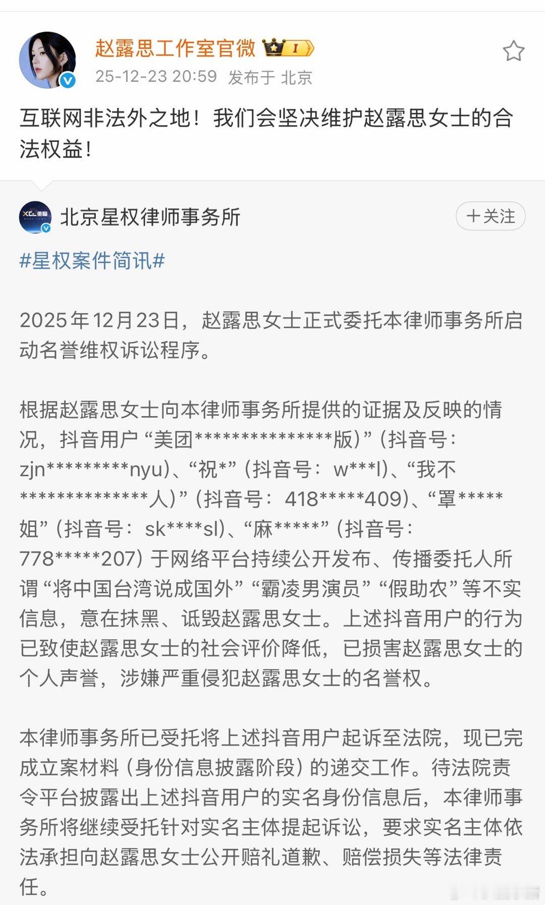 赵露思告黑维权!互联网非法外之地,支持露思维权!
