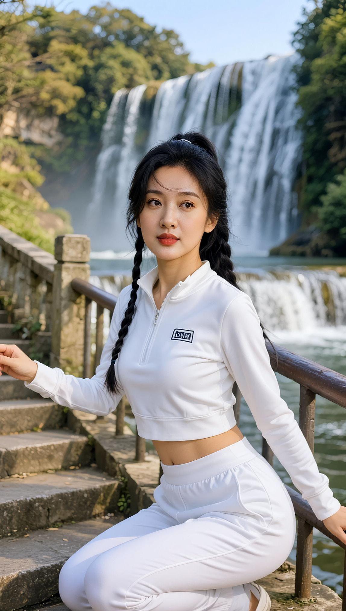 AI瀑布畔运动风照 抖音ai创作 少女写真 甜系女孩 甜美女孩穿搭