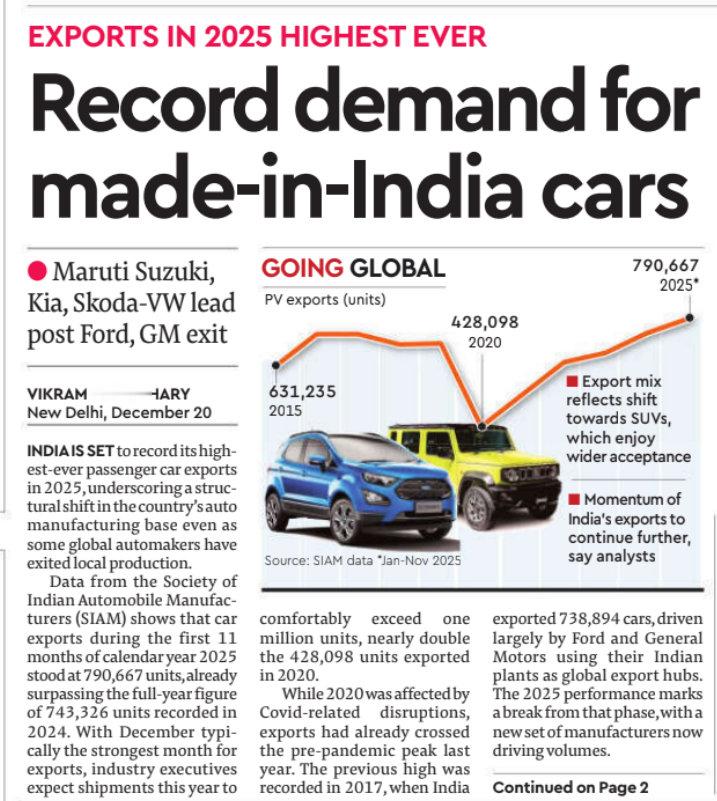 之前发的那条汽车年产量的微博,评论区大家最震惊的是:“印度汽车产量比韩国还高了?”结果今天我又看见一个数据:不光产量高,而且人家车,还卖出去了。2025 年 1–11 月,印度已经出口了79万辆乘用车,提前超过 2024 全年的出口量。按现在这个节奏,年底破百万基本稳了。更有意思的是卖的是什么。不是我们刻板印象里的低价小车,而是 SUV 占比越来越高,全球市场都吃这一套,单车价值也更好看。厂商这边,福特、通用撤了没错,但马鲁蒂铃木、起亚、斯柯达-大众反而越投越大,新产能一上再上。看来印度现在已经是“正儿八经的全球造车基地”,不是临时工。大v聊车印度汽车出口