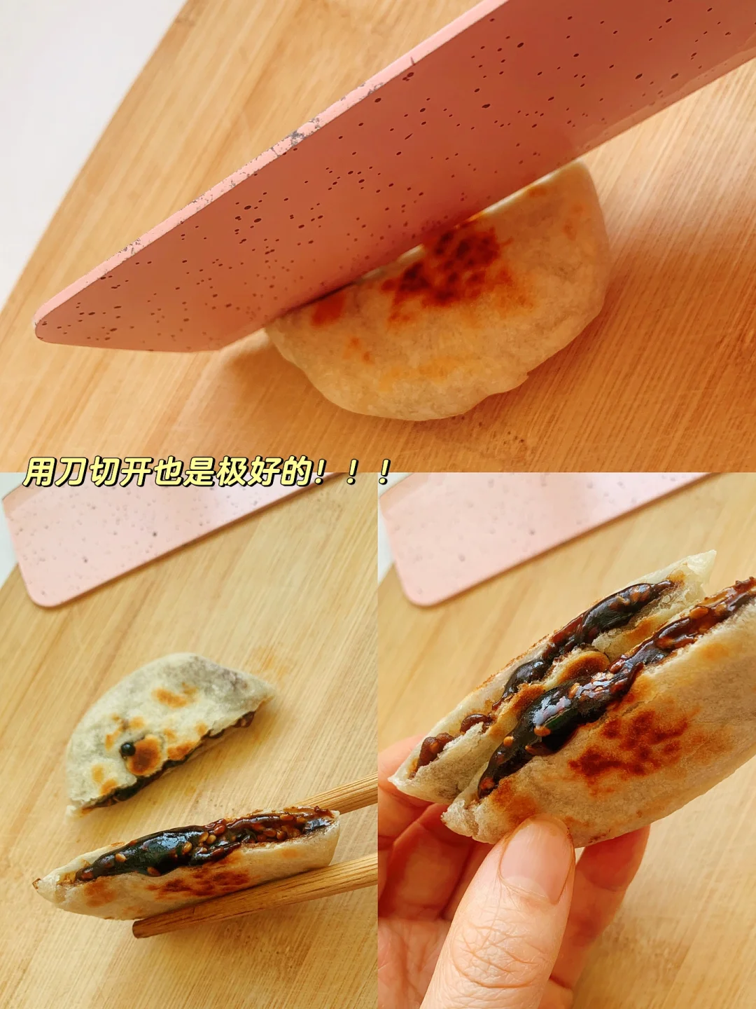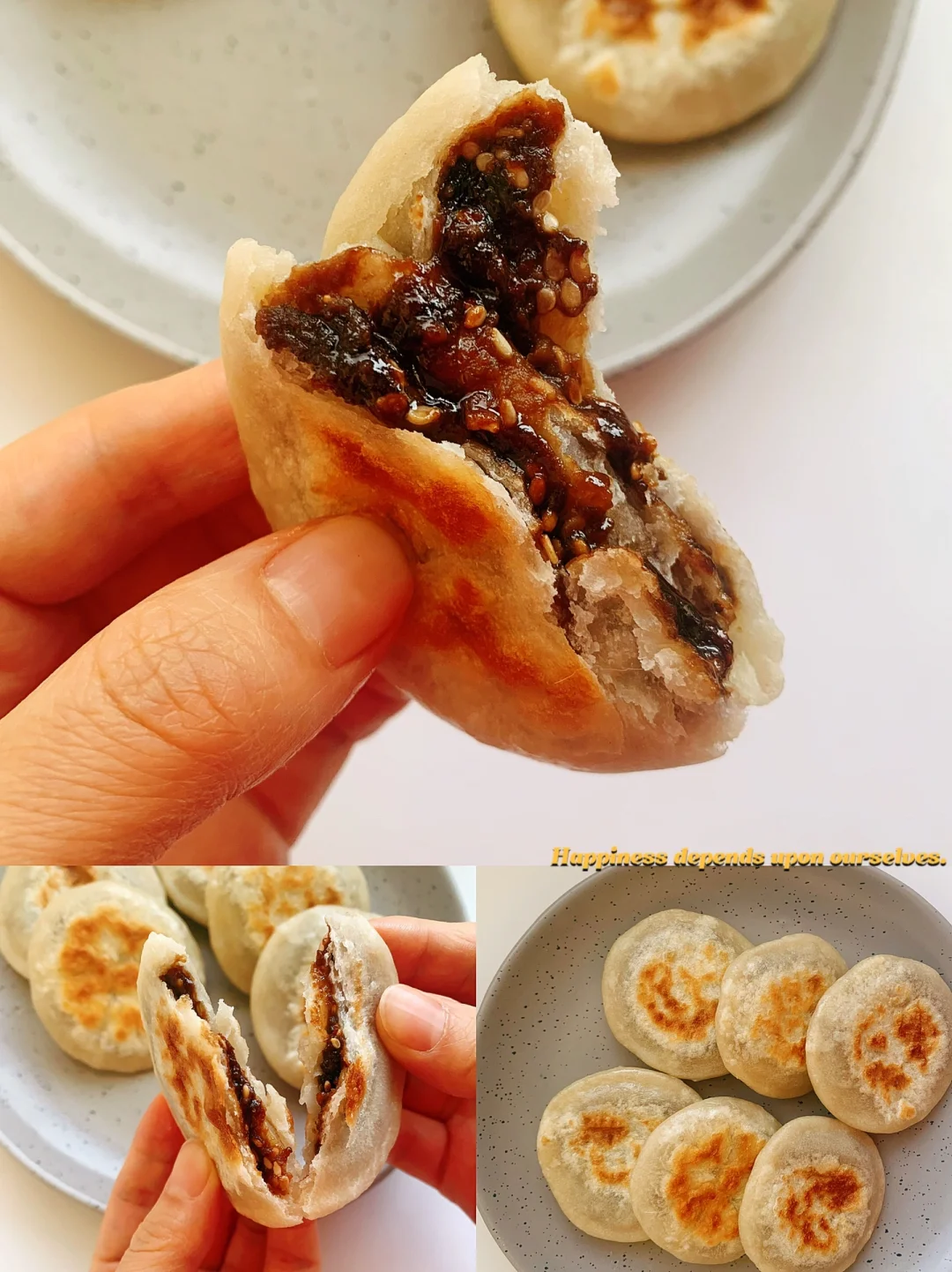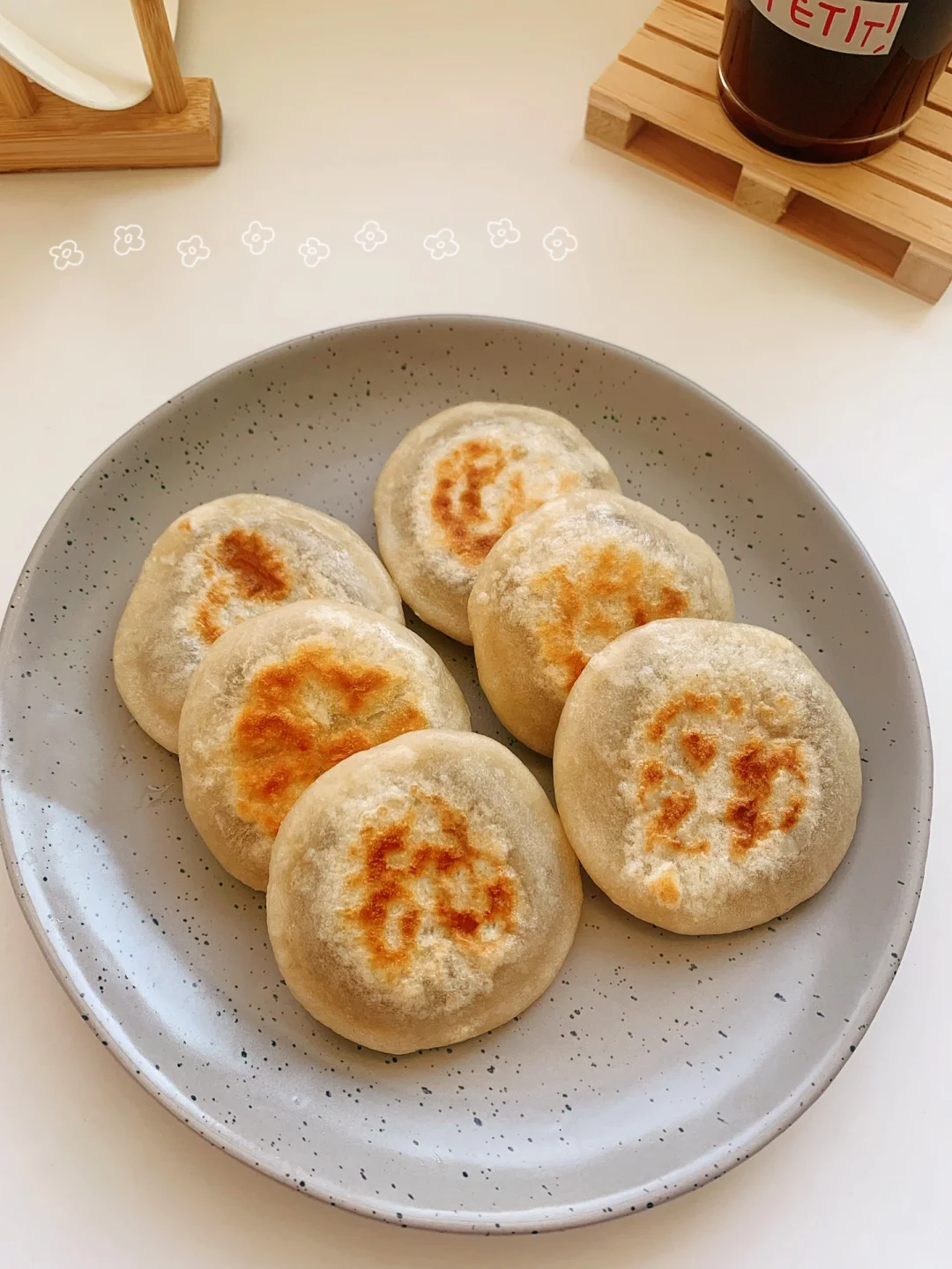 3️⃣将馅料包起来,封口捏紧,然后用手捏成薄薄的小饼。
